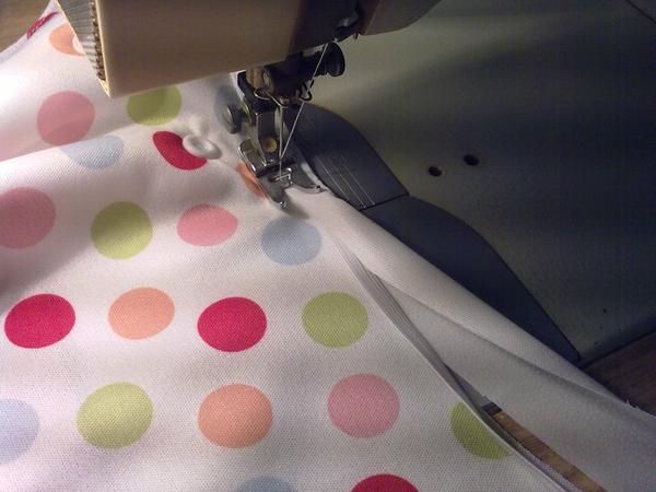 3. Prisijem gumku tam, kde chcem aby zacinala. Dajme tomu ze prvu stranu kde sijem od zipsu k usku, tak prisijem priblizne 10 cm od vrchu.