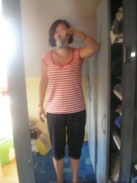 jinak aby to nevypadalo že se jen flákám tak jsem so konečně spíchla triko 😉 jen teda je moc široké 😝 takže nejspíš poputuje ke švagrové 😀 omluvte blbé foto 😅 to první ještě jde druhé nic moc a třetí fotil Honzík 😉 manžovi to focení mé osoby moc nede tak si zaučuju druhou generaci 😉 😀
