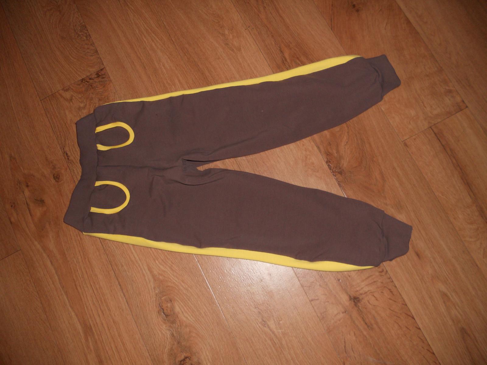 KOnečně jsem po kouskách došila kalhoty/ tepláčky, samostatná prvotina se střihem (burda 2/2012). Jsou podšité, aby byly trochu teplejší, ta fotka není nic moc, ale na modelka nebyla na focení příliš naladěná 😀. Přijde mi, že to vypadá, že je každánohavice jiná, ale ve skutečnosti není 🙂. Ještě dávám foto bryndáčku, nic světoborného 🙂