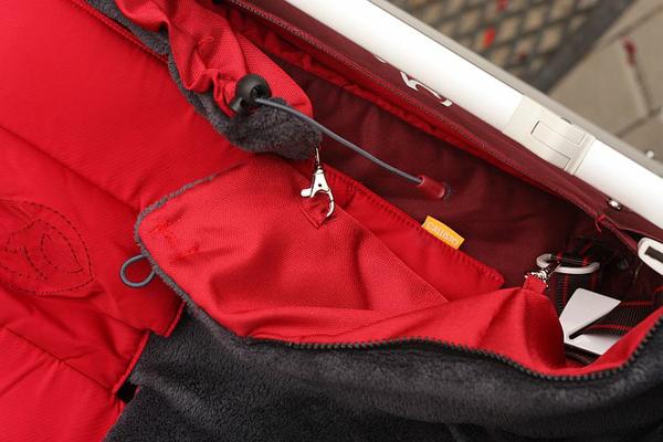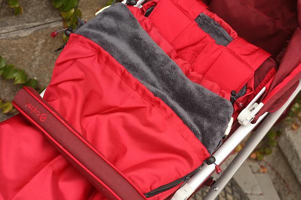 Kočárkovina od Gábinky + termolín + vatelín + lama od Animal (moc příjemná!), nánožník podšit ještě nějakou podšívkou, co jsem měla od tchýně na půdu. Spotřeba přesně 2,5 m, nezbylo fakt nic 😀 😀 😀