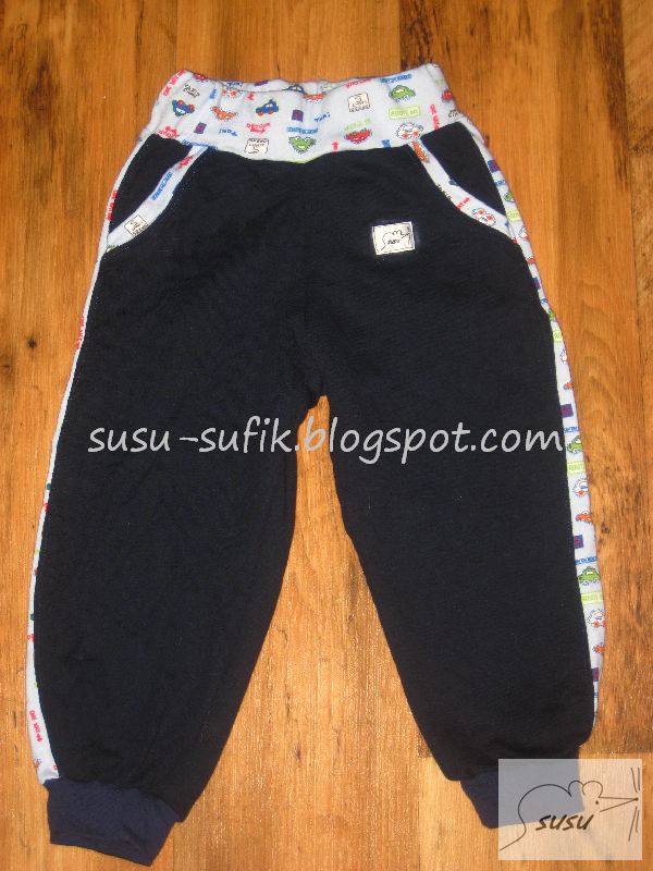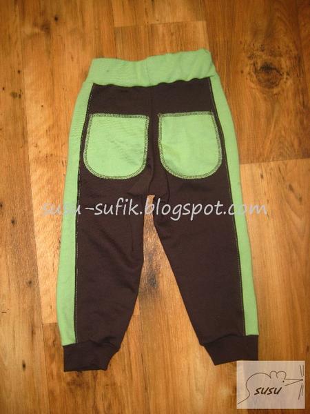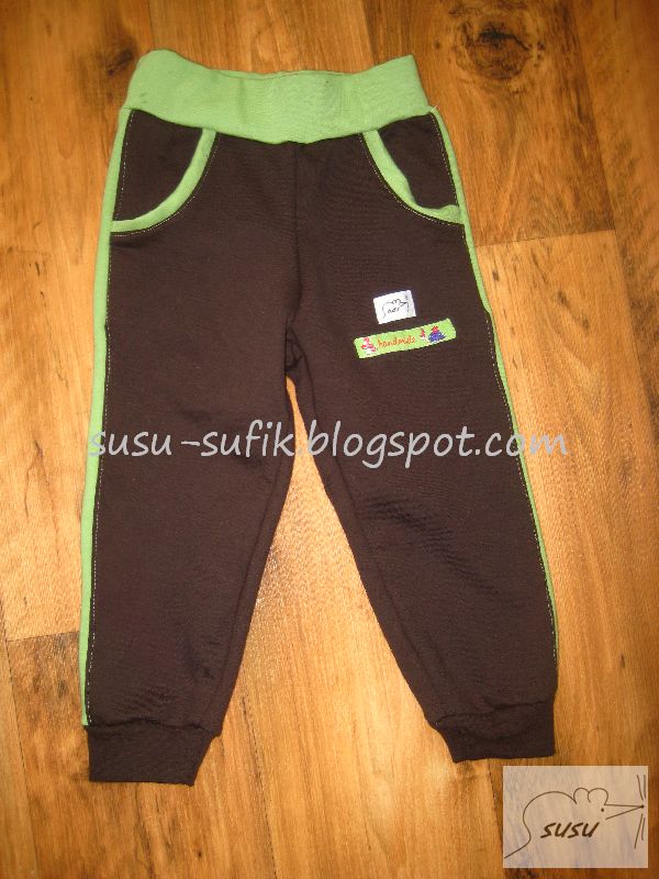 já spíchla dvoje tepláčky. A i s nášivkou handmade 😀 mám tu tyhle stužky a šla tam pěkně do barvy.... hrozně mi dítě vyrostlo a ze všeho mu koukají nohy, snad o 5 čísel za měsíc....