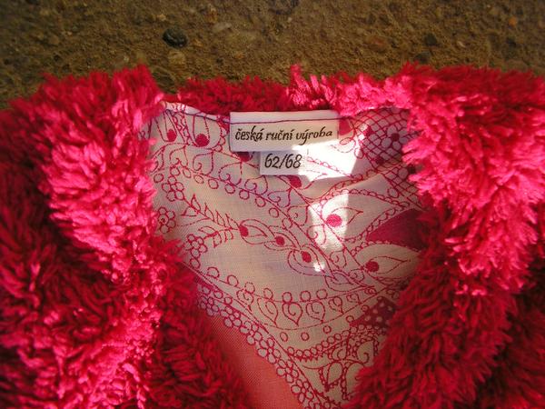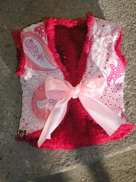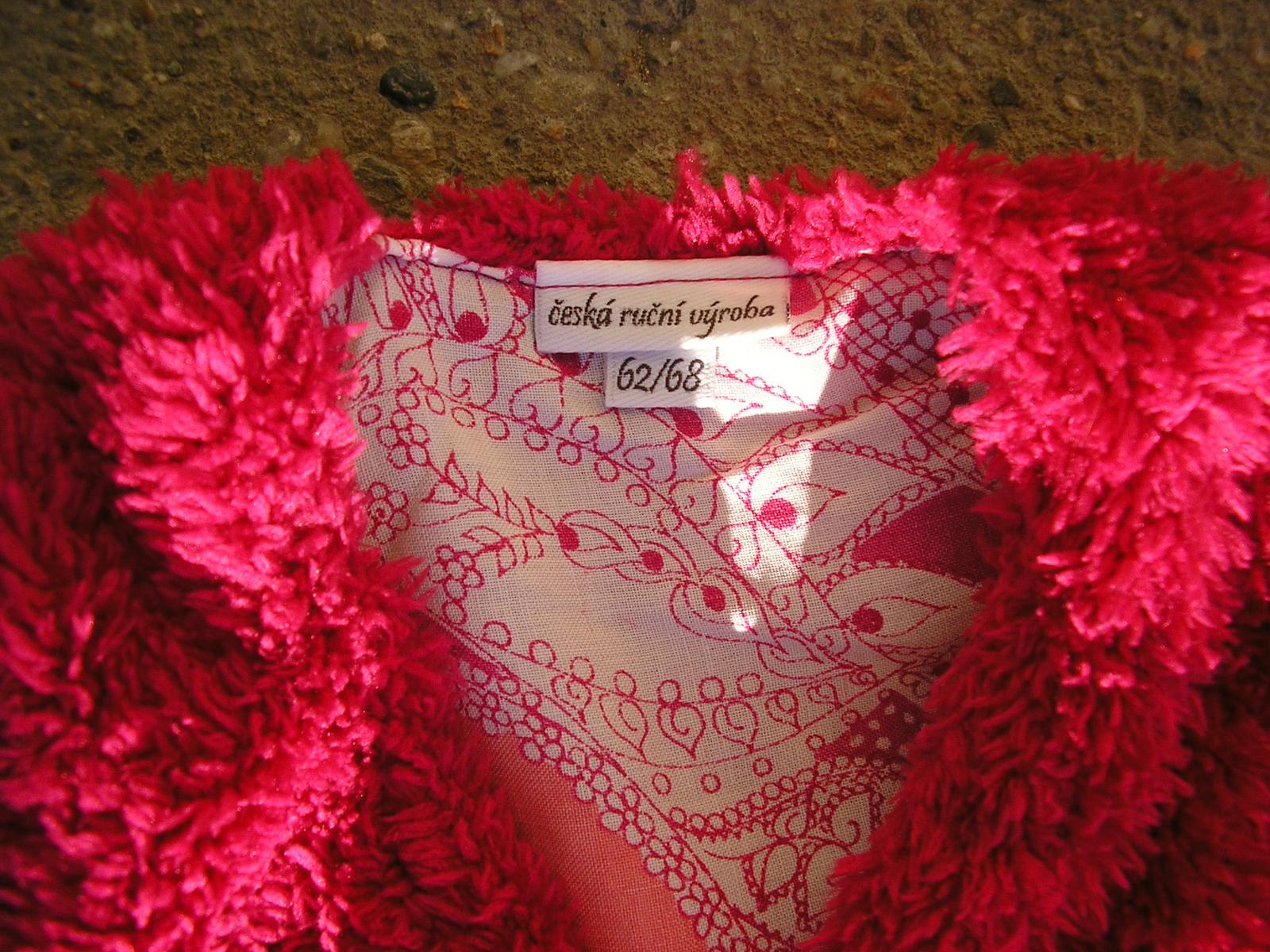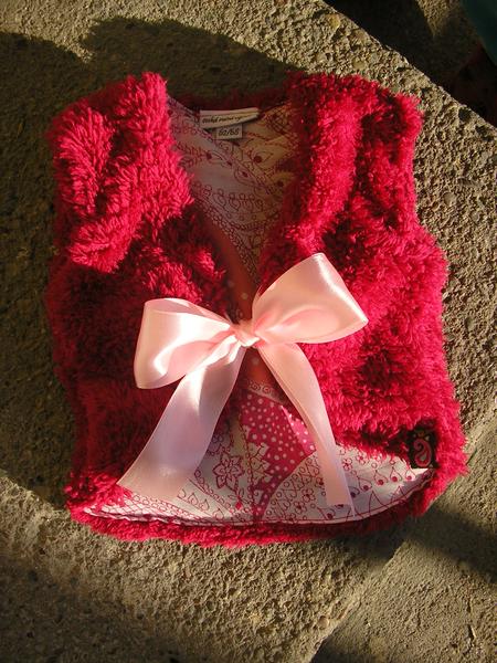 jinak pro milovnice růžové 😀 měla jsem strašnou chuť ušít konečně něco holčičího a tak vznikla vesta pro Lindu - namalováno od ruky - podle rozměrů tak vel.62. Je oboustranná - fuchsiová lama a z druhé strany paisly bavlna (starý závěs😀) ...ách...jsem si to tak užila - konečně začíná šití, na kterém se fakt vyřádím😀