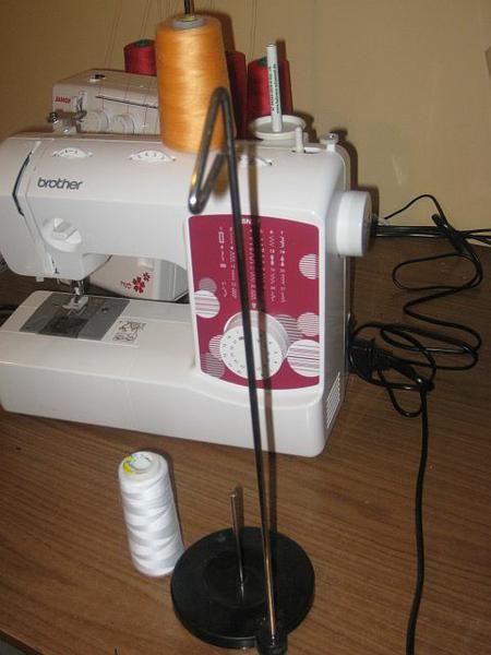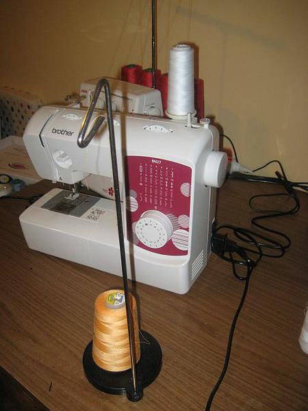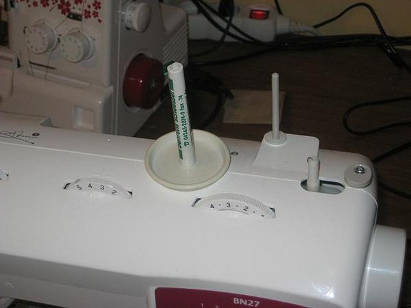 @macin73 Jedna je kupovaná (ta vysoká s tyčkou a černým spodkem s bodcem) a druhá je jen přidělaná na normální tyčce u stroje - mistička, která se standartně prodává ke strojům http://www.svadlenkaiva-eshop.cz/miska-pod-nite... a kus staré propisky. A kóny fungují bez problémů. Když šiju dvojjehlou, používám obě.