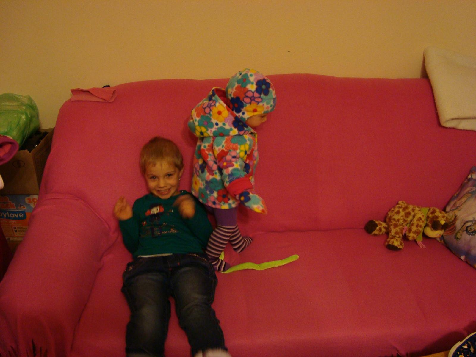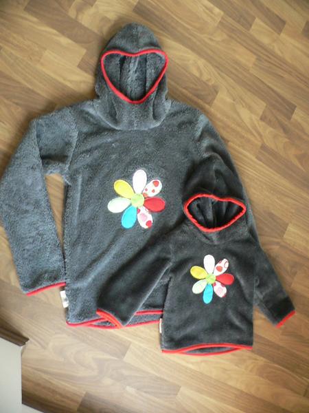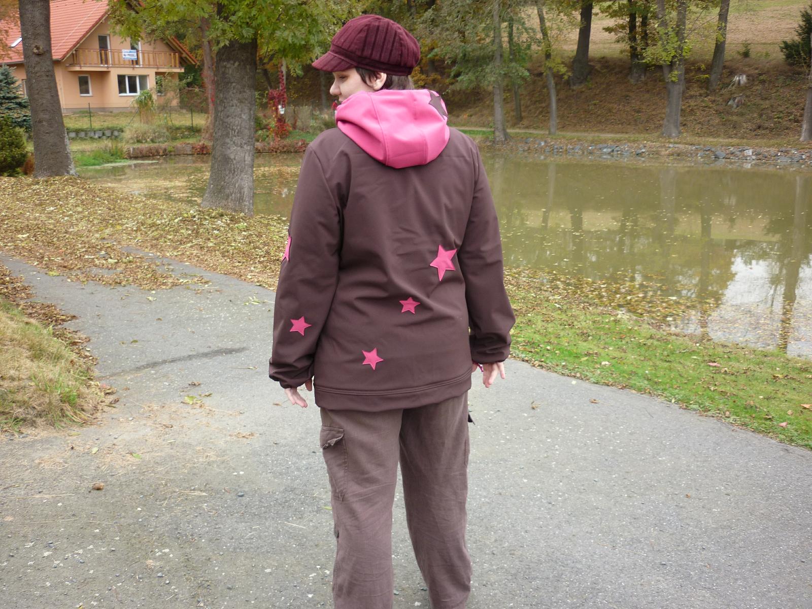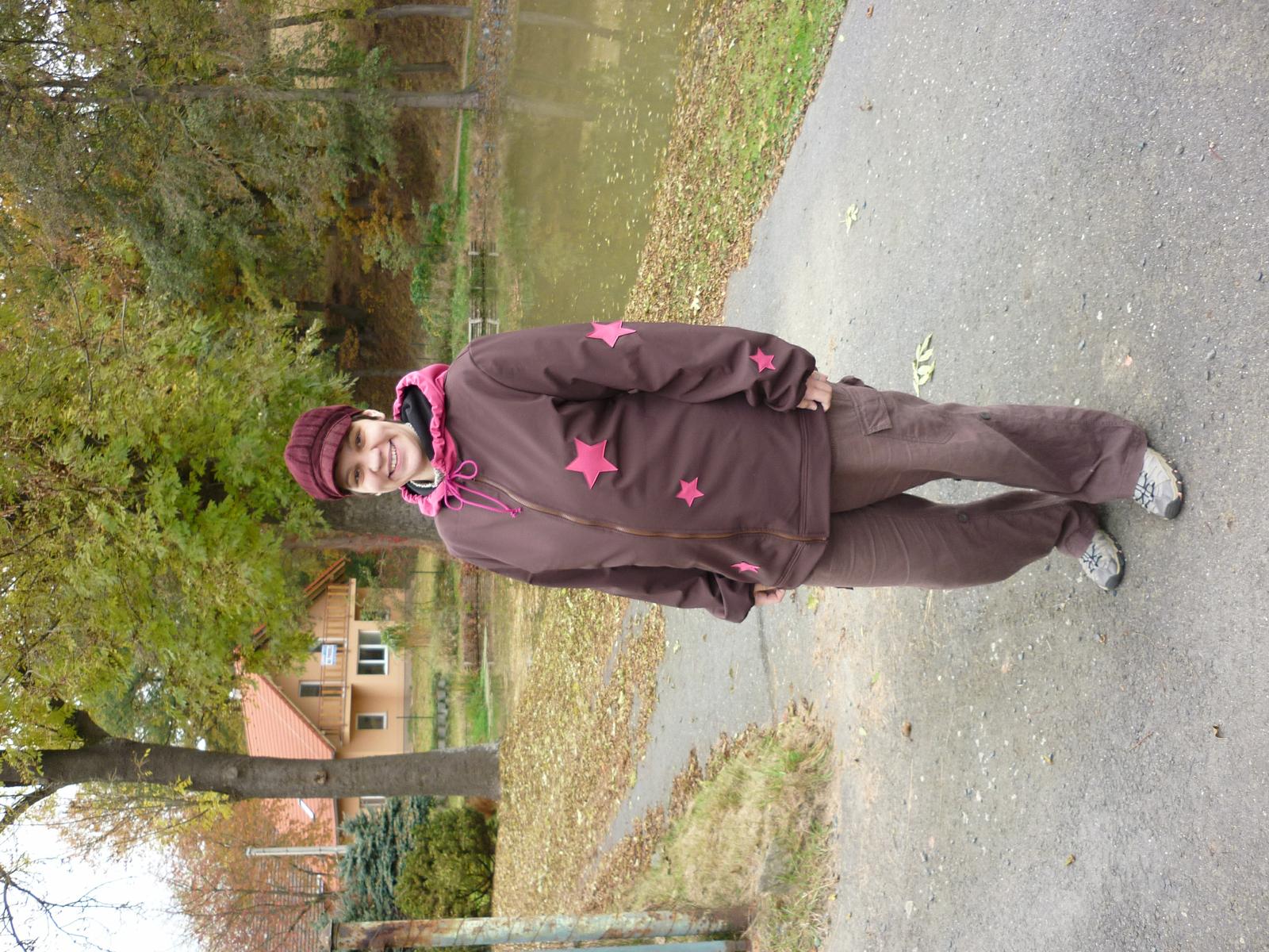 děkuju, děkuju, prošívání vrstev? já ušila zvlášť soft a zvlášť flís 🙂 u tý bundy je to sesišý jenom v místě nákrníčku 🙂 to nebylo tak hrozný, protože nejdříve jsem přišila kapucu - soft k softu a pak flís k flísu a na tom flísu (dvě vrstvy) je náplet na krk, takže nic hroznýho no a pak mám sesitý rukávy, na flísu je náplet a k tomu nápletu je přišitý soft takže zase jen dvě vrsty a no a pak je flís přišitý v bočních švech softu a jinak nikde, a kalhoty jsou přišitý jenom vrchní část takže to celkem šlo 🙂