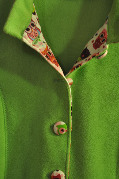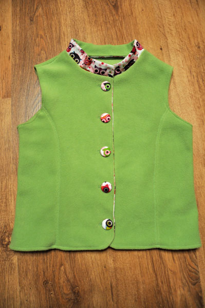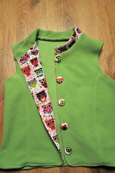 Holky, tak poprvé jdu trochu tvořivě zaspamovat... můj první šicí počin (pokud nepočítám jeden pokus před 20 lety). Dneska jsem dotáhla do konce zelenou vestu, zítra mě čeká ještě fialová varianta (pro dvojčata) - tam taky chybí jen detaily. Buďte prosím shovívavé, je to fakt moje premiéra, ještě ke všemu jsem si musela hodně lámat hlavu, protože původně to mělo být s kapucí a podšívkou. Tu jsem nechtěla, ale zase by to nevypadalo pěkně, když by nebyla vesta zapnutá... a ten stojáček jsem prostě nějak sesmolila, bude asi víc od krku, ale první nástřelová zkouška se zdála v pohodě. Místo knoflíků měly být jen patentky, ale takhle mi to přišlo veselejší. Jo, a ještě tam měly být kapsy, mám je i střižené, ale fakt nějak nevím, jak na ně, tak se na ně asi vykašlu. Pro začátek jsem si tak jako tak vzala věru mega sousto (aspoň se mi zdá a když jsem se tu s tím pachtila, v duchu jsem si rezervovala místo v Bohnicích vedle Car a ostatních 😨). Jo, a omluvte prosím kvalitu fotek, ale prostě jsem to musela nafotit ještě teď a podělit se... Víte vůbec, jakou mám RADOST? 😀