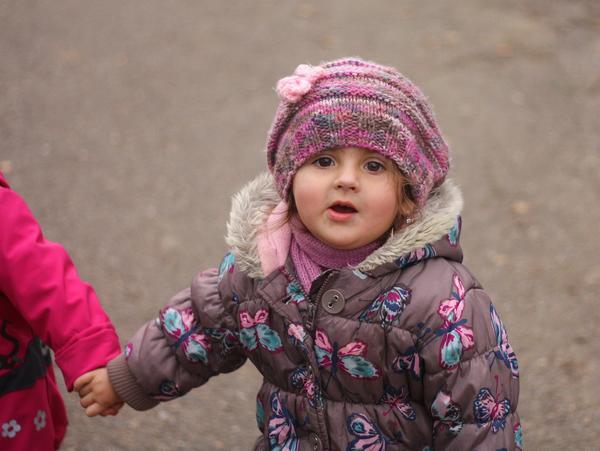 A jeste foto z dnesni prochazky. Prvni musim dat, protoze kamaradka ma tak strasne krasnou holcicku 😀 A je to ta cepice, co chci plest Mine... 😀