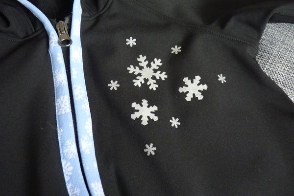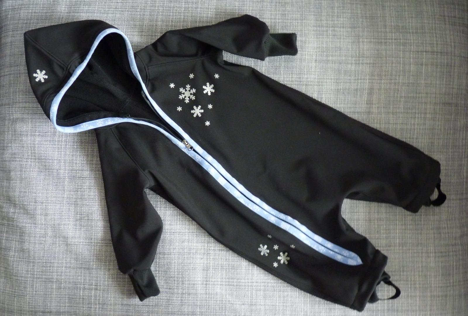 přidává svůj první softový počin - kombinézku pro synka podle Ott. Došitou ji mám 14 dní, ale vymyslela jsem si reflexky vločky a nemohla jsem nikde sehnat raznici. Náplety na nohavice jsem udělala podle Rinny, na rukávy jsem udělala s dírou na palec. Tak dlouho jsem totiž zvětšovala střih (aby se pod něj vešlo teplé oblečení a tělo bylo dlouhé i pro našeho dlouhotělce s látkovou plínkou), že mu to bude asi i za rok 🙂 Takže letoz nohavice zkrácené a rukávy i přes dlaň, za rok už normálně.