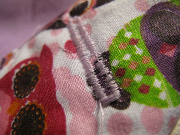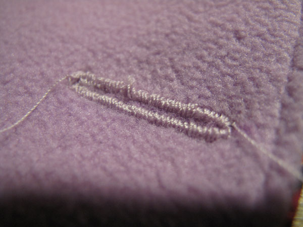 Tak moje sebevědomí se vytratilo úplně... prostě mi to nejde. Jednou to aspoň dírku ušilo, ale horní nit je šíleně volná. Jinak všechny další pokusy skončily totálním zacucháním spodní nitě. Už nevím, co mám udělat jinak ☹. Líc je fialový, rub sovičky. Jo, a rachtá to chvílemi snad ještě víc než předtím... ☹.
