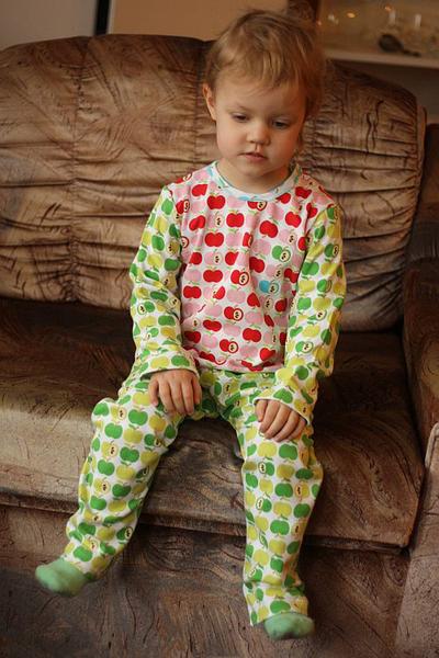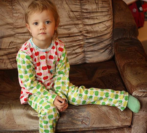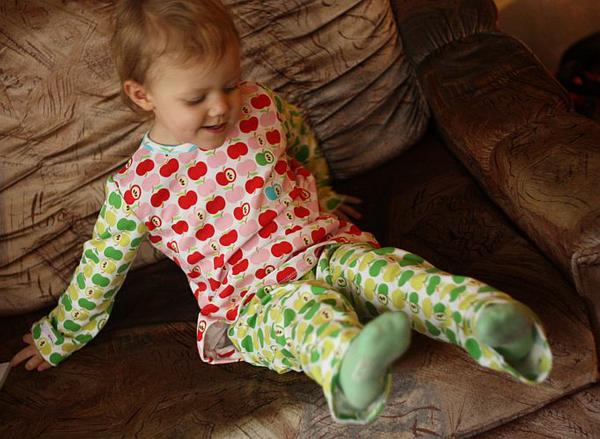 Tak jsem včera utekla relaxovat od balíků ke stroji a stvořila úchylnej počin z jablíček. Jasmí ráno byla tak nadšená, že pyžamo odmítala sundat 😀