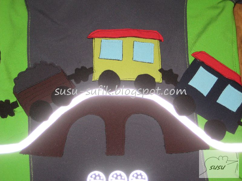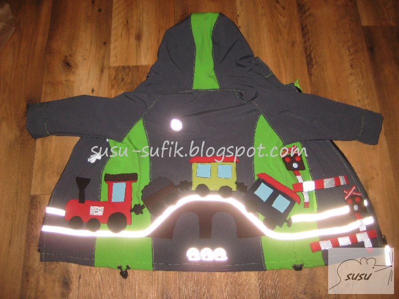 holky přidávám novou softku pro svého potomka. Inspirace Car a jejíma vláčkovýma softkama. I ta kapuca, ale šila jsem jí nakonec od oka a 2x, ta první byla málo hluboká. Víc fotek a popisů na blogu. Jo a závory se otvírají, aby se dostal do kapsy 😀