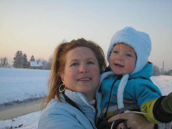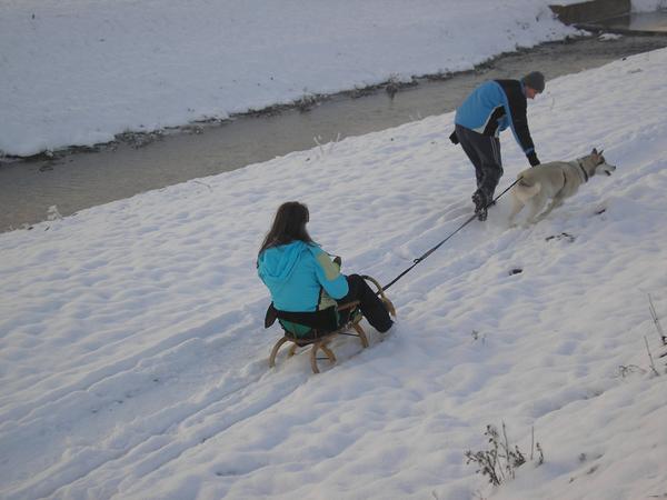babule, konečne máme aj my sneh.... softky aj čiapka konečne v akcii, boli sme vonku hodinu pred západom slnka, kým zapadlo slnko, tak sa ochladilo, že malý sa triasol, mal ľadové ruky a hlavne nohy - som sa čudovala, v snehulkách, veľmi nechcel na sánkach, skôr po vlastných....., no a na skúšku bol aj pes zapriahnutý, ale ešte nesmie ťahať, má len 9 mesiacov