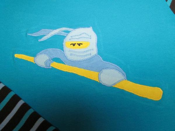 - tríča pro starší kluky - ninjago a transformer - obrázky si vybrali sami, tak mě nezbylo nic jiného než sebrat odvahu a zkusit cik-cak aplikace 🙂, ale díky bezva návodu od @kuna se myslím dařilo, ninju jsem podložila dvojitým zažehlovacím vliselinem a pak po došití obstřihla