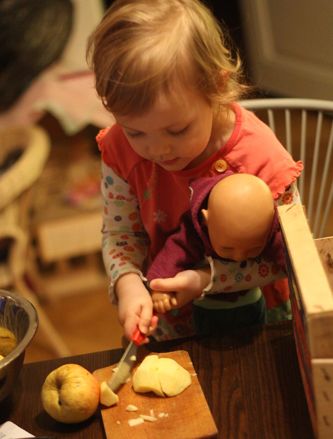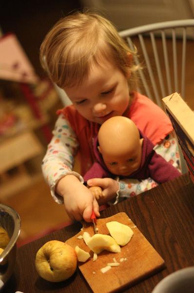 Já netvořím, tak alespoň, jak Jasmína včera dělala křížaly. Musela jsem je vyfotit, to fakt krájela ona! 😀 Resp. teda prý miminko...