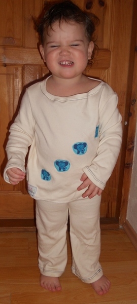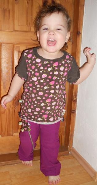 - vychytaný pýžo pro Bětku, oblíká se sama, tak takhle to líp pozná 🙂 ze slonů a jahůdek je prostě nadšená 🙂