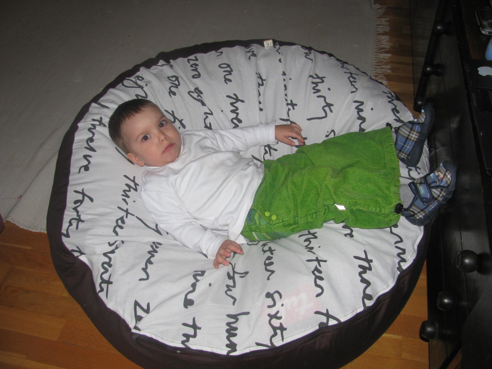 dnesna rychlovka - navlek na sedaci vak pre drobca, aby lepsie ladil do chlapcenskej izby, povodna farba vaku je totiz bordova. druhy je pre brata, ked videl vak, este si doobjednal aj taburetku 🙂