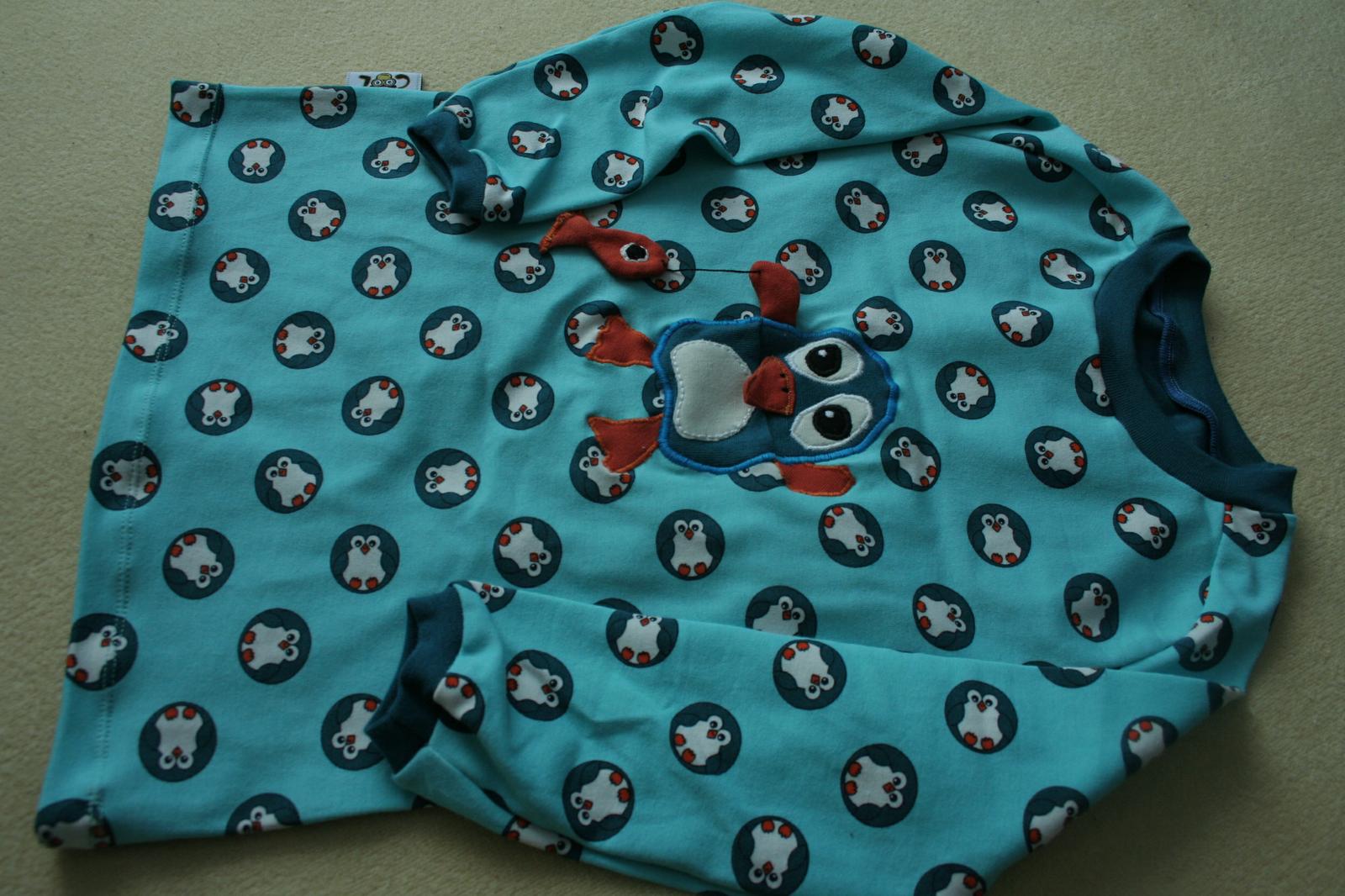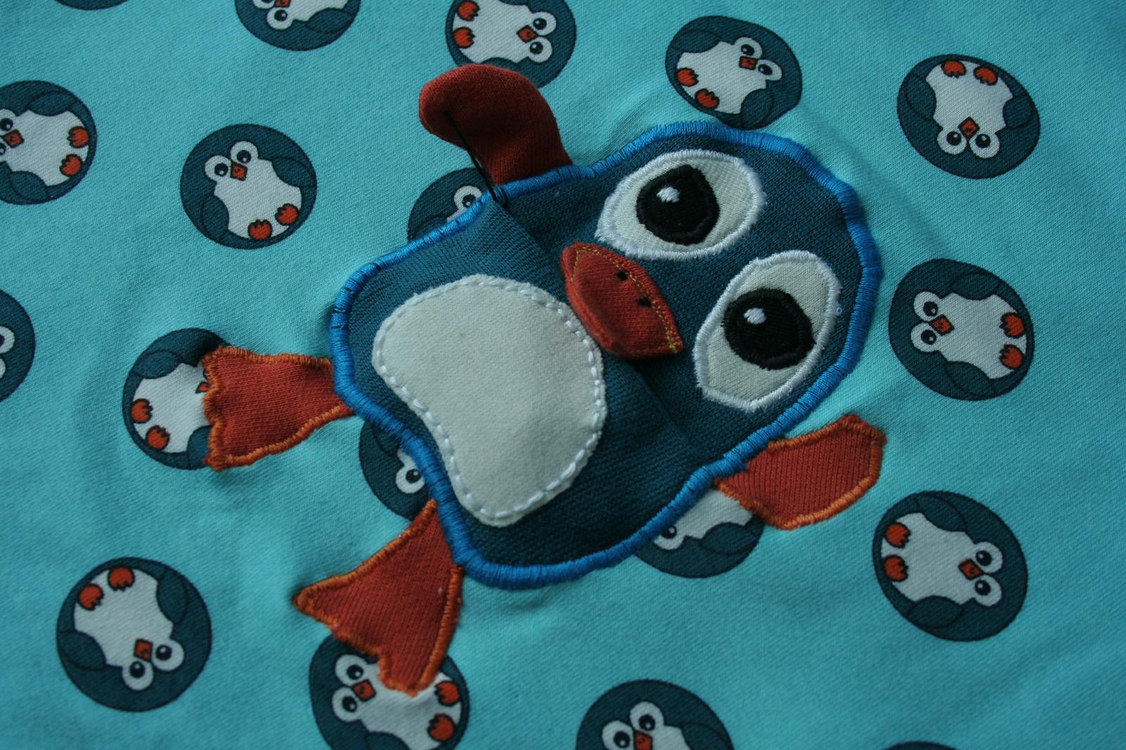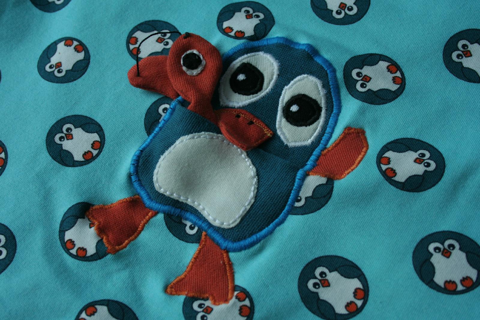 sleduju vás, po očku. Tak po delší době taky něco přidám. Malej kamarád bude slavit první rok a Toník dostane tričko s tučňákama. Bohužel ten tučňák (ne moc povedenej pajc ruttu-nuttu) na tučňáčí látce nevynikl. Příště bych ho zvětšila a pod něj dala ještě jednobarevnou, ale byla to piplačka, tak asi další příště nebude.