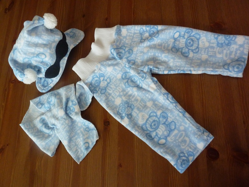 Ahoj, vůbec nechápu, jak stíháte šít. Já se skoro k ničemu nedostanu. Jedinej čas je od půlnoci, ale to jsem většinou vyřízená 😝 . Takže mi trvá trochu déle než dám něco dohromady. Konečně jsem tedy střihla do merina - hnědé bodyno, k tomu z teplákoviny - hnědé tepláčky a ještě sada flísový komplet - modrý medvěd.