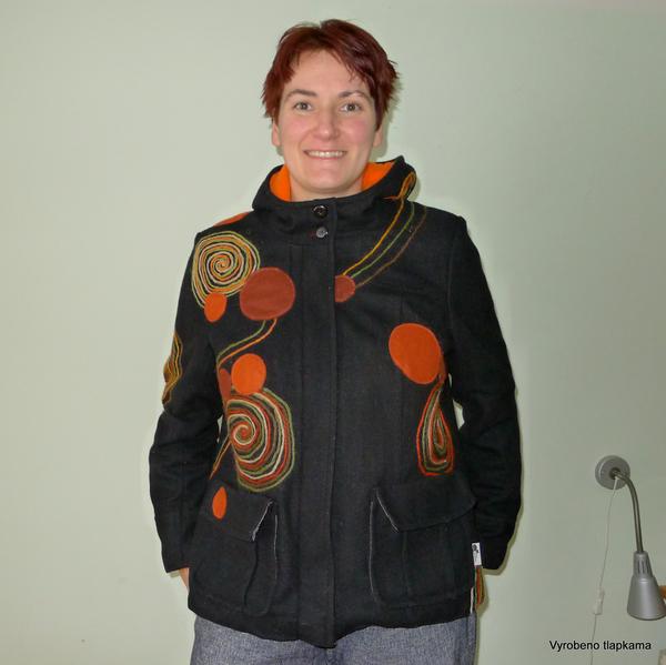 @veronik77 to je jednoduchá, jednodenní recyklace, víš? Kabátek z druhé ruky, jsem si to malovala, jak to bude raz dva, pak jsem nemohla najít plsť, pak jsem zjistila, že mi muž vyhodil plstící molitan a ve finále jsem zlomila jeghlu 😀 Takže jsem to našila průhlednou nití. To jsem dělala 3 dny, další dva ručně našívala flísovou podšívku 😝 Lepší šít nový, než přešívat 🙄 😀