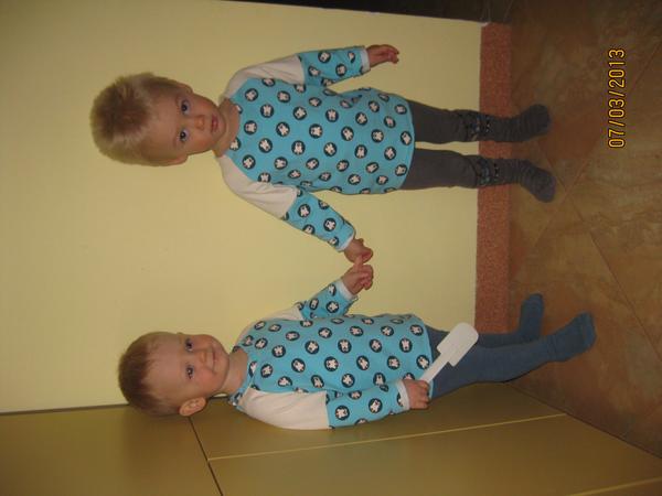 @ucitelka70 tak tu je môj výtvor. Ušitie v pohode len ten lem okolo krku dal zabrať, bud to odstávalo alebo to potom nepretiahli cez hlavu