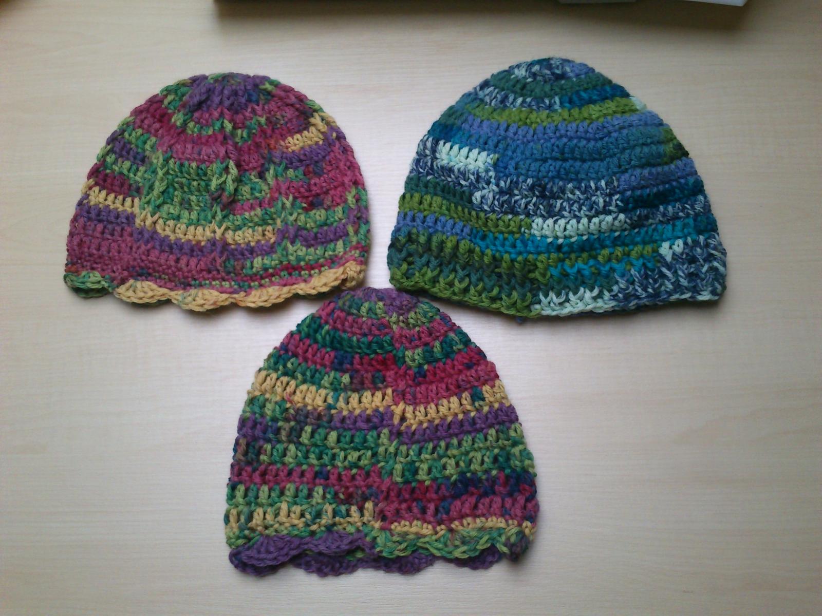 @veronik77 ta fotka se třema čepkama, tak to je big fabel od drops (je tlustší než fabel, super se z toho dělá a nekouše 🙂 ), ta tmavá čepka tak to je delight a z tý jsem taková rozpačitá.. nevím, jestli jsem měla smůlu na klubko, ale byla tam vlna různě suilná a i když to pak ve výsledku není vidět, tak mě to hodně drásalo při háčkování :-/. a díky za pochvalu 🙂