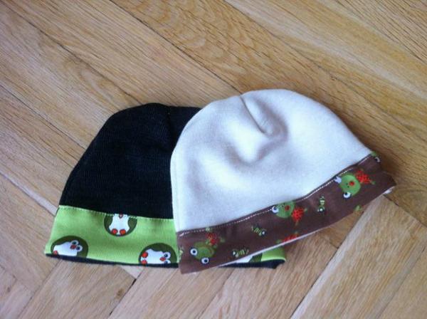 A já nezahálím, bez stroje jsem vydržela týden (od pátku do čtvrtka 😀 ). Včera jsem dílo započala a dnes dokonala. Jeden obal na jednorázovky plus krém (není to tak křivé, jen úhel focení), bude mi to ladit k tašce, kterou ještě musím došít. A pak dvě merino čepičky (teda jedna je climayarn). Jsou mu trošku větší, ale to nevadí, za měsíc to nebude problém 😀