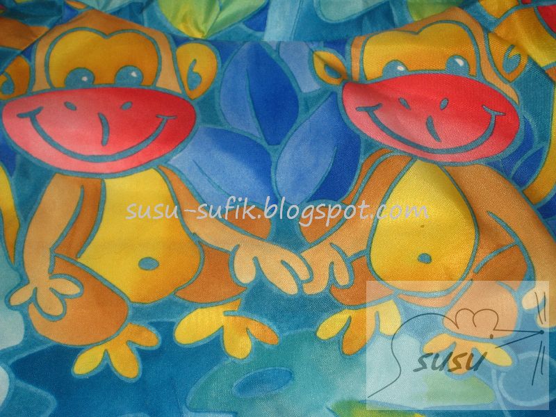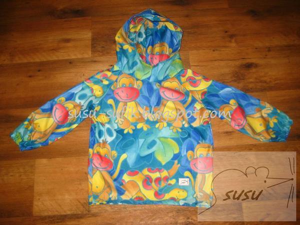 A ještě další počin - opičí divočina - šusťákovka. Myslím, že bude super až se konečně oteplí nebo v létě jen tak malý balíček do kapsy, kdyby začlo fest foukat. Taky podle Danaiky. Ale teda upravená.