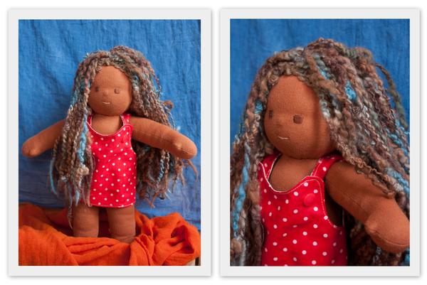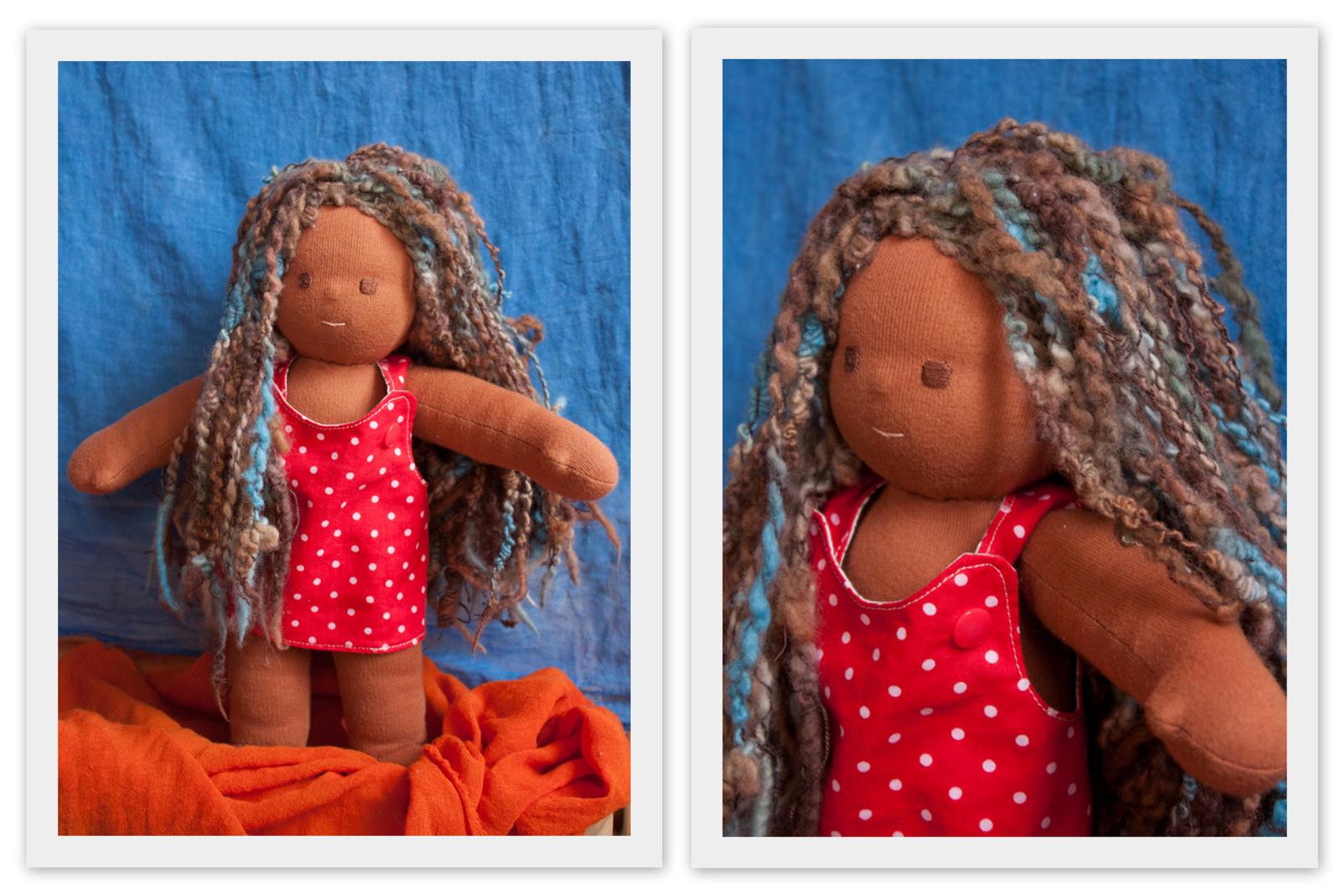 Já jsem poslední měsíc úplně marná, ke stroji jsem se skoro nedokopala, zvládla jsem ušít jen jedno triko.. 😝 Snad tedy nebude vadit, když sem přihodím jeden výtvor to party háčkovaných a jednu panenku. Medvěd vyráběný ve waldorfském mateřském centru a panenka z loňského léta, vyfocena dnes. 😀