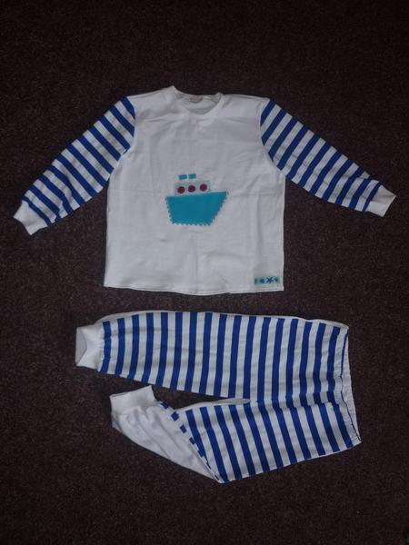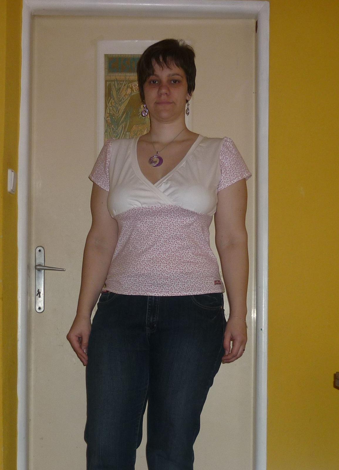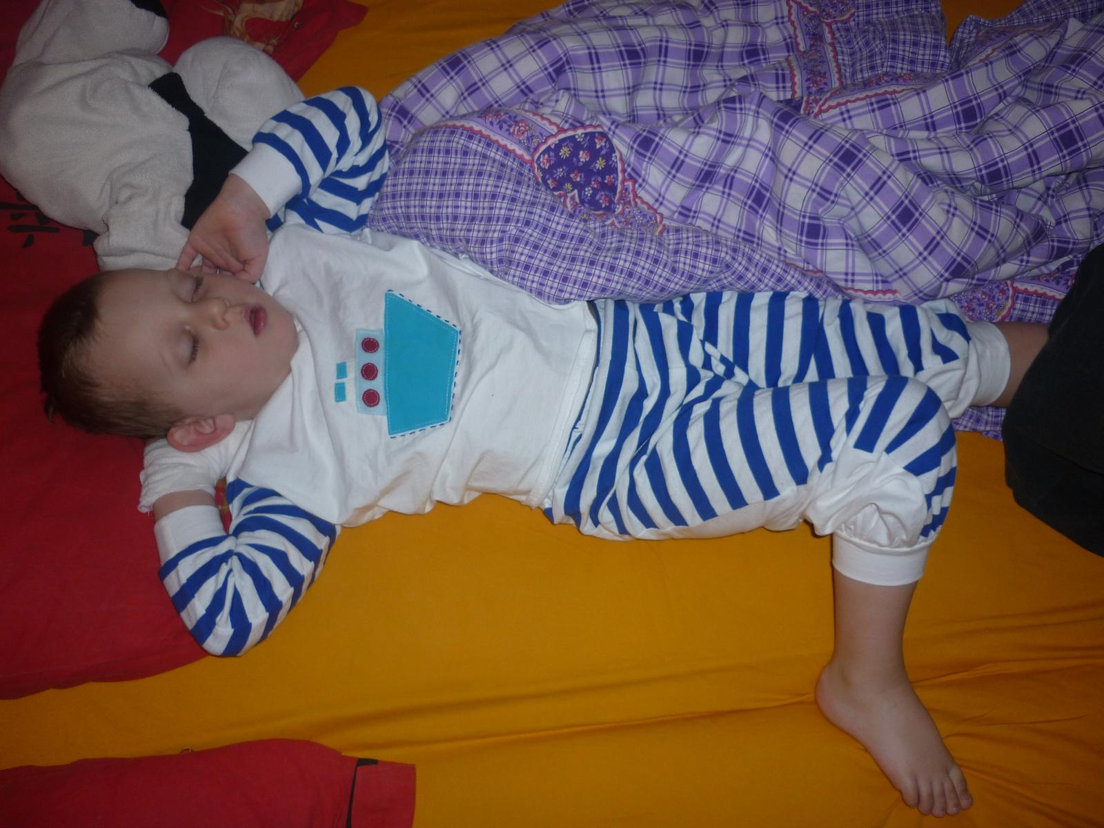 já jsem si konečně ušila tričko na kojení, akorát je mi krátký, když sedím táhne mi na záda 😖 a pyžamko pro Maxíka 🙂