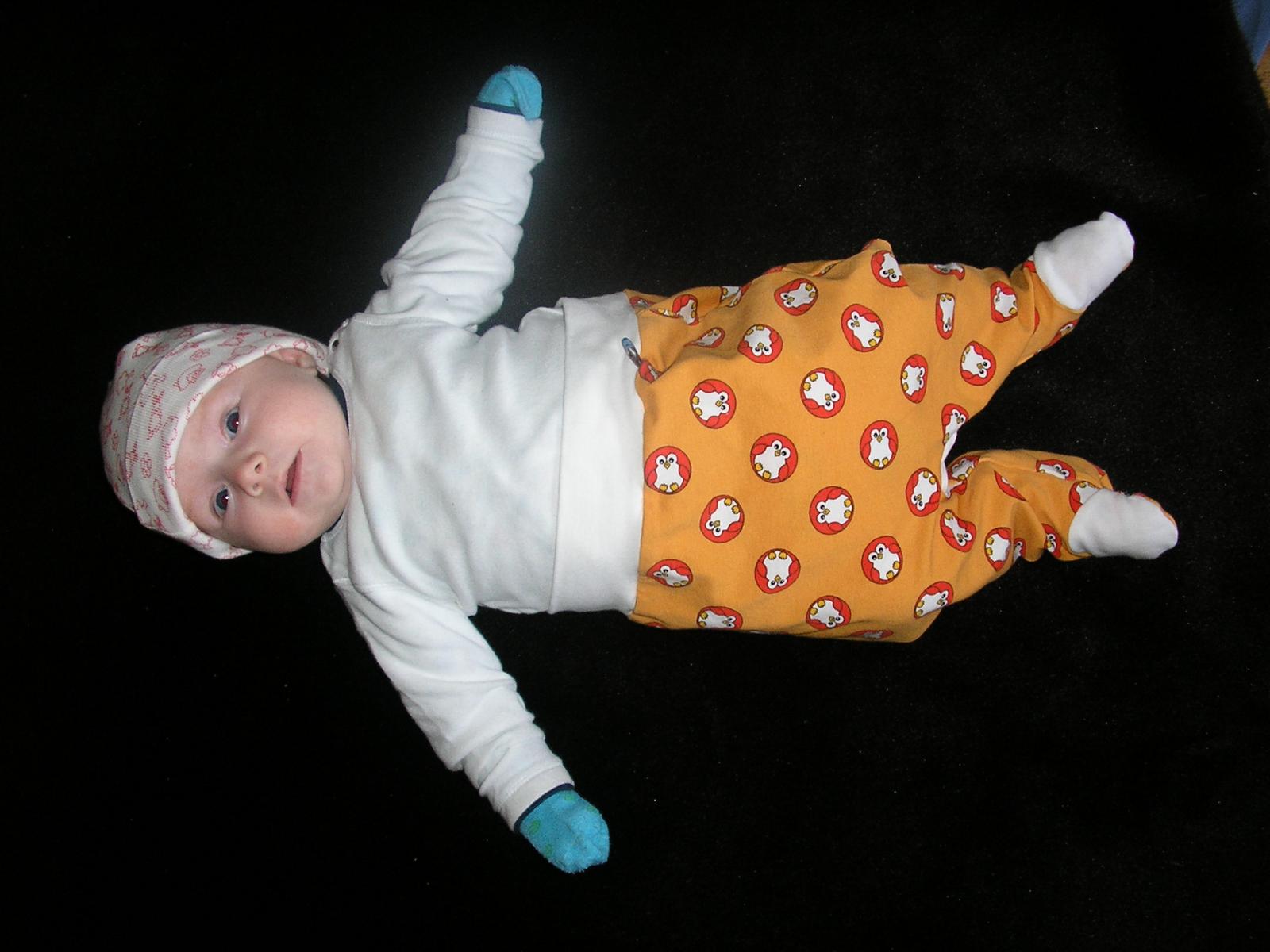 Mikina Danai z FM z bambusového výplňku z MTX podšitá mikroplyšem z Dadky, čepičky a nákrčníky z bambusového francouzského froté z ŠD a všude tučňoši.