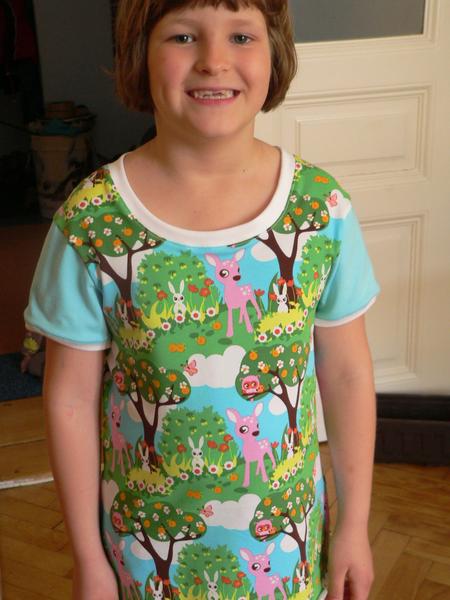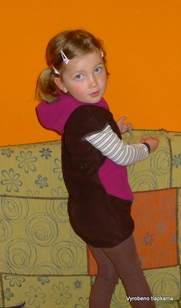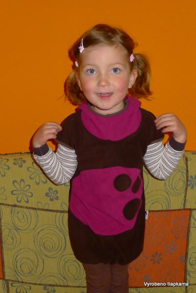 Musím vás pak dočíst, slavili jsme o víkendu 4. narozeniny. Jolí narozeninové plavky chtějí ještě úpravy, tak sem šoupnu aspoň flísovou tuniku pro J. kamarádku, co má narozky ve stejný den. šila jsem ji od 2 do půl třetí v noci den předem poté, co jsem upekla 3 dorty a ušila ty plavky, takže původně měla být ta fialová část symetrická, no nakonec jsem na to prskla pár koleček a vydávám to za záměr, špendlit se mi fakt nechtělo 😀