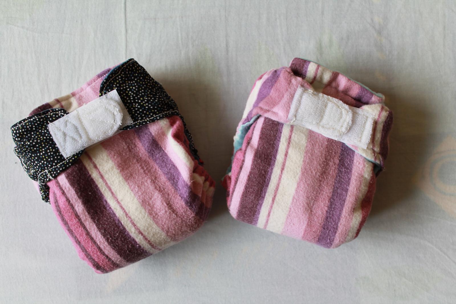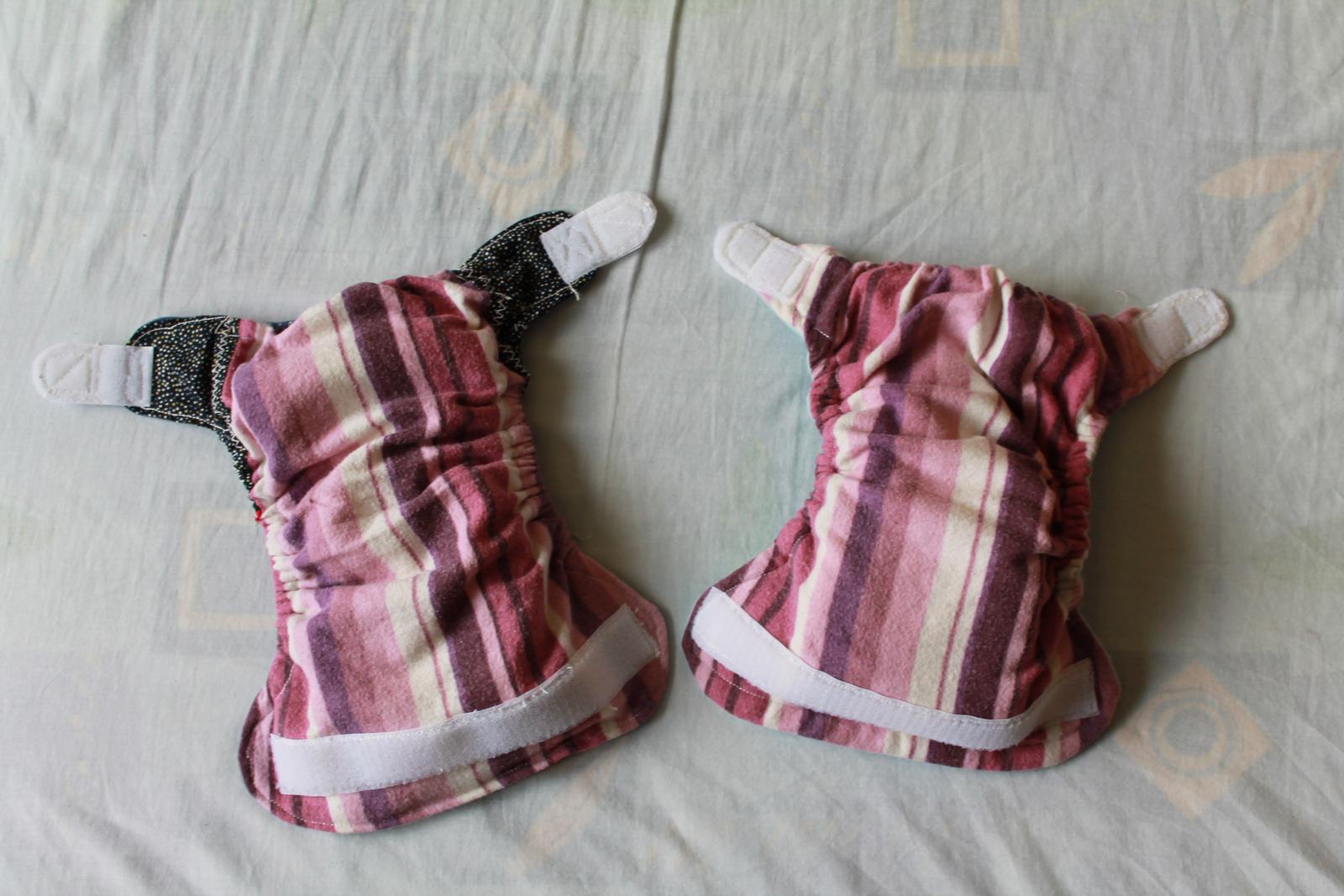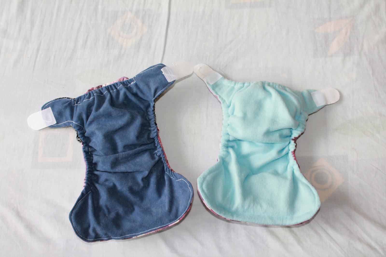 Na úvod som použila flanel, čo sme mali doma a deku z Ikea, na druhú som už zastrihla aj do suedeclothu. Do vnútra som ušila vkladačky z českého babmusového flísu, aby sa dali vyberať kvôli schnutiu.