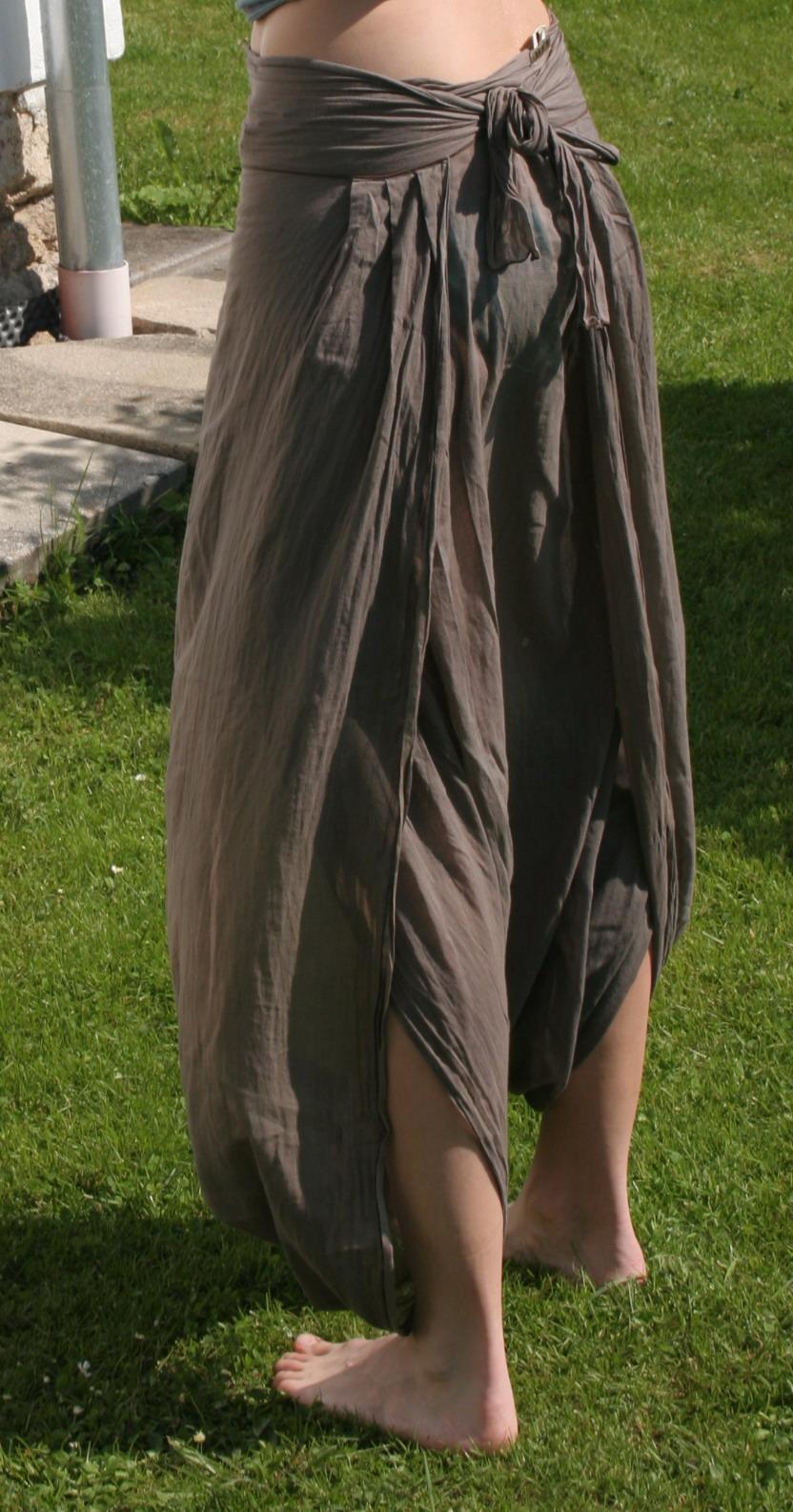 na šití se ted chvíli nedostanu,bojuju s časem a taky trošku marodim, ale musim vám sem hodit jeden hooodně primitivní střih. Odnesla jsem si to ze sekáče jako supr materiál, netušíc co to vlastně kupuju (ale látka je moc příjemná lehoučká bavlna). Po vyprání jsme to zkusila na sebe namotat a ejhle nas..čky jsou na světě. Nejspíš to přešiju na sukni, ale třebas vás to inspiruje: