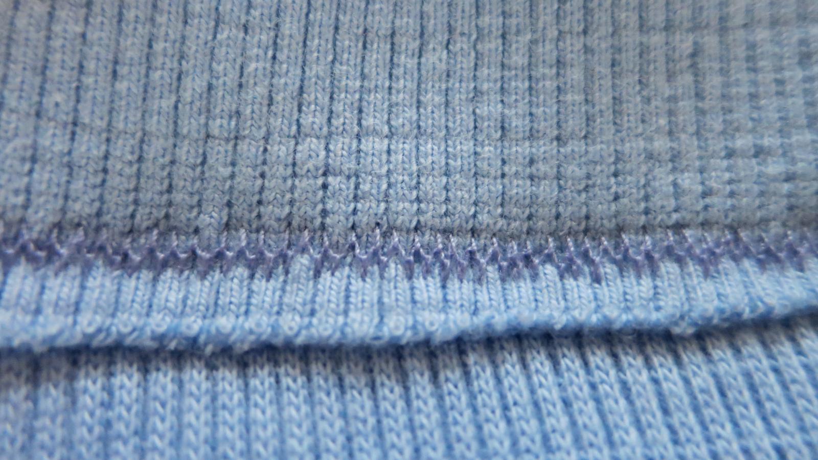 @zuzu_epona ja mám napätie hornej nite nastavené na 2-3 a šijem šikmým cik-cakom, odvtedy mi nič nepraská 🙂. Prešívala som takto aj pás s gumou a úplne v pohode, viď foto. Predtým som používala rovný steh, ale ten mi na tričkách dole praskal... a tiež látku trošičku naťahujem, ale fakt len máličko