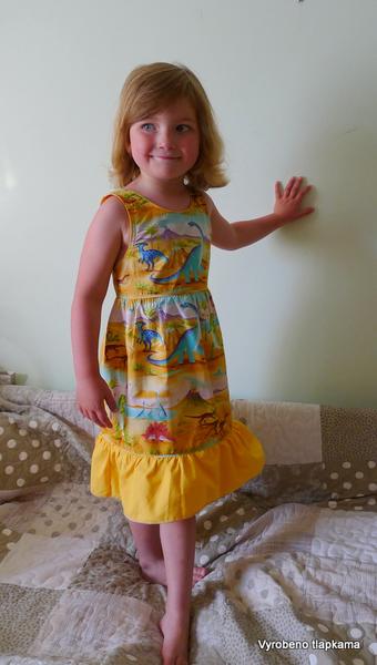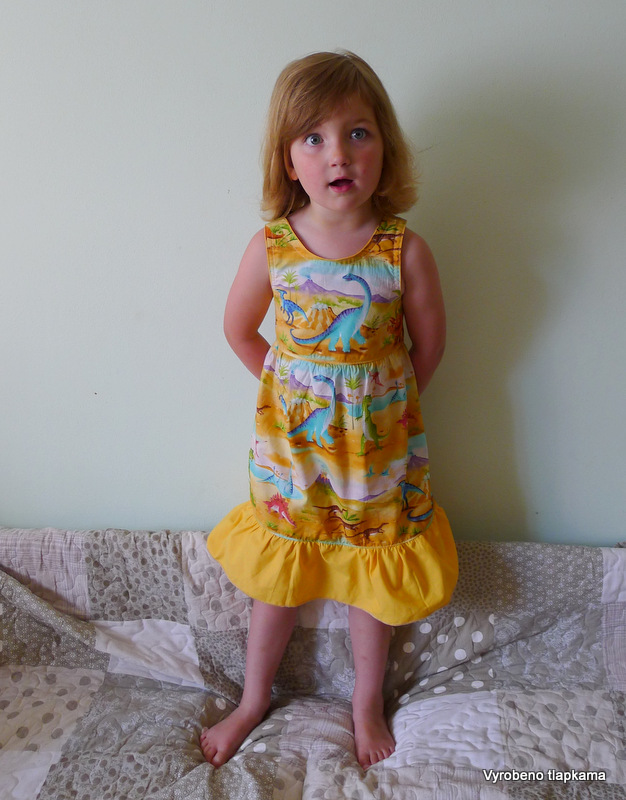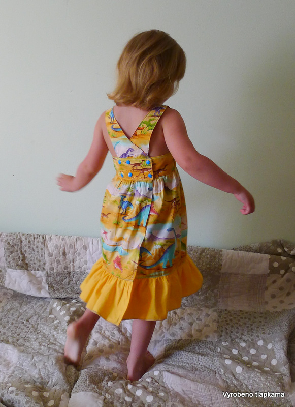 @kuna krásný. Já si včera taky hrála s šatičkama, vymyslela jsem střih, ušití v pohodě a pak jsem si asi hodinu a půl hrála s knoflíkovou dirkou, nějak se mi zablokovala, tak jsou tam patentky 😀 Jinak jediná látka, nad kterou byla J. ochotná uvažovat, měla jsem jí málo a je bohužel vyprodaná, tak jsem musela neplánovaně prodlužovat o žlutý kanýr a jsem ve finále ráda😀