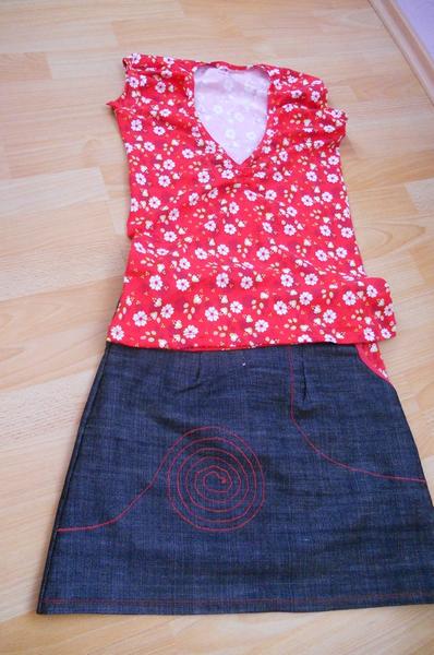 Moje výtvory a vypadá to že jsem zdolala i to lemování těch úpletů - chce to fakt širší 🙂 jedno kojo triko a triko se sukní, nechtěla jsem sukni a jsem nadšená že jsem si jí ušila, dolaďování za pochodu, je na zip, jinak bych jí na sebe asi nikdy nedostala 😝 😝 😝