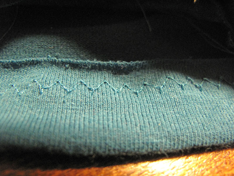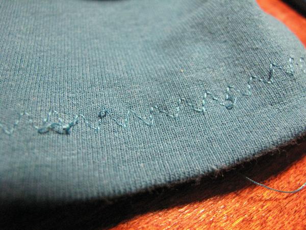 Jinak patent taky našívám (třeba u nohavic) tak, že si ho naměřím trochu kratší, pak sešiju, přehnu, vložím do něj nohavici a přišívám na OL. Patent natahuju, aby měl stejnou šířku jako nohavice.