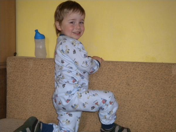 Konečně jsem ze zbytků látek udělala prckovi pyžámka do školky, ještě mi toho do školkové výbavi chybí hodně 🙂 potom se vrhnu na tepláčky. Pak mám v plánu dodělat jednu pachworkovou deku, kterou mám nedodělanou už asi 15let 🙂 a pak prckovi deku s traktory a bagry a ........ to jsem zvědavá jak to dopadne 😀