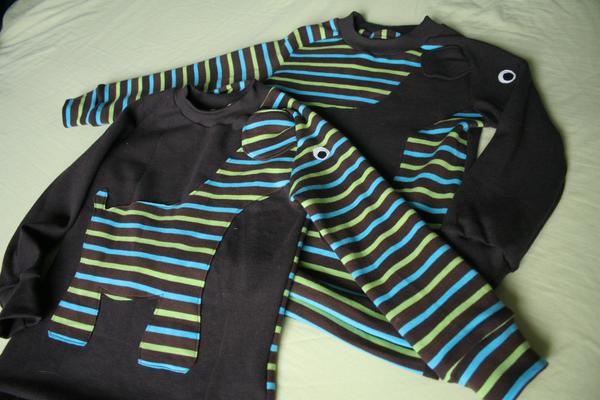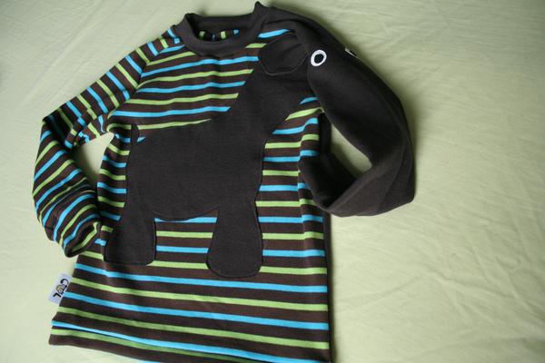A konečně už i u nás máme sloní triko (čoko finerib mtx a proužek mtx z výprodeje od car)- při stříhání jsem se krapet sekla, tak nakonec vznikly trika dvě. Teď budeme muset rozhodnout kterej slon se zabydlí u nás a kterýho dáme kamarádovi...