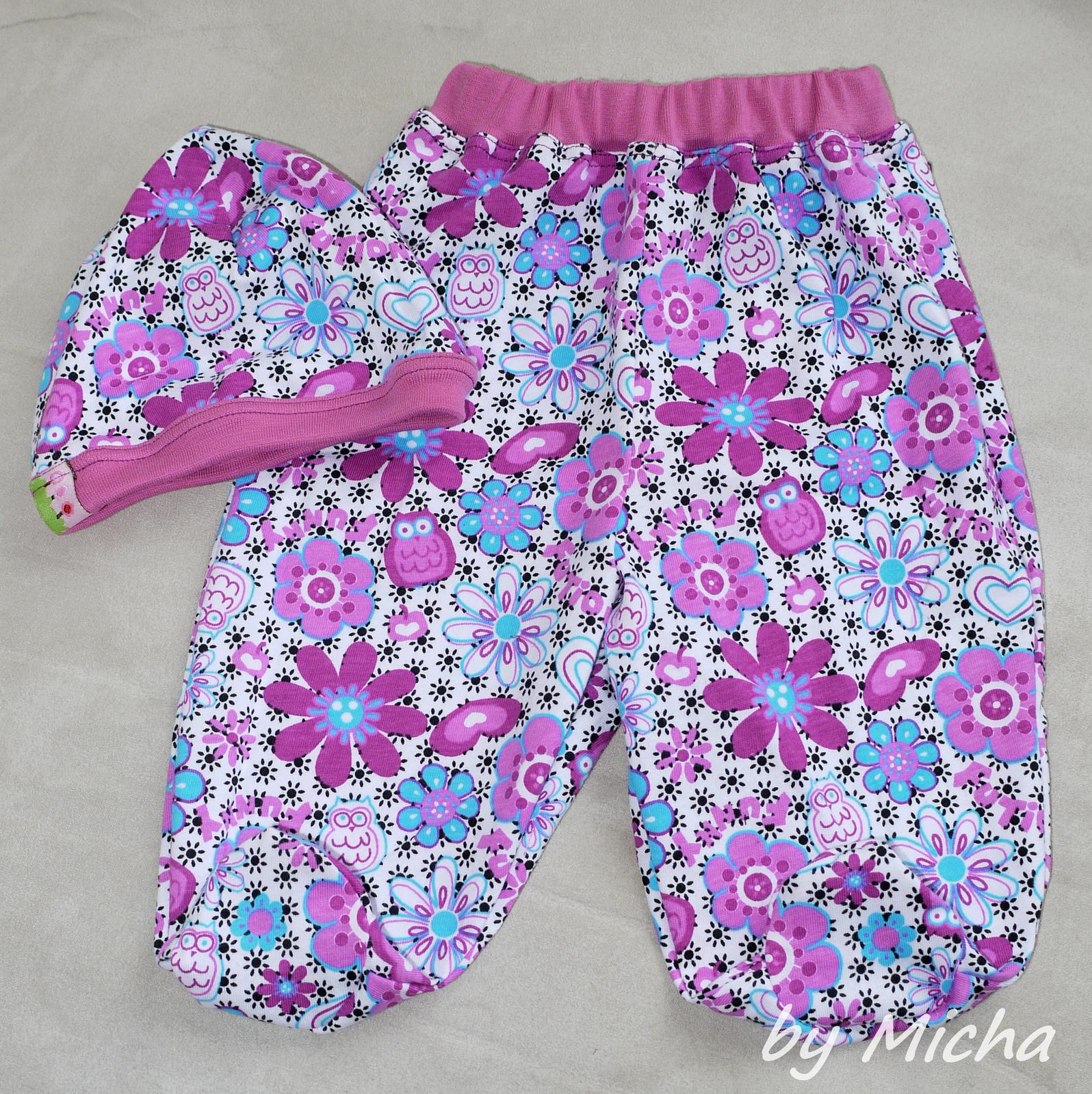 čau, dneska jsem se do toho opřela a šila jak ďas 😀 pyžamo je teda už z minulého týdne, už jednou vyprané a nežehlené 😝 a dneska Vojtíkovi dvoje tepláky 🙂 a pro malou polodupačky (střih je od oka) a k nim ladící čepičku 🙂
