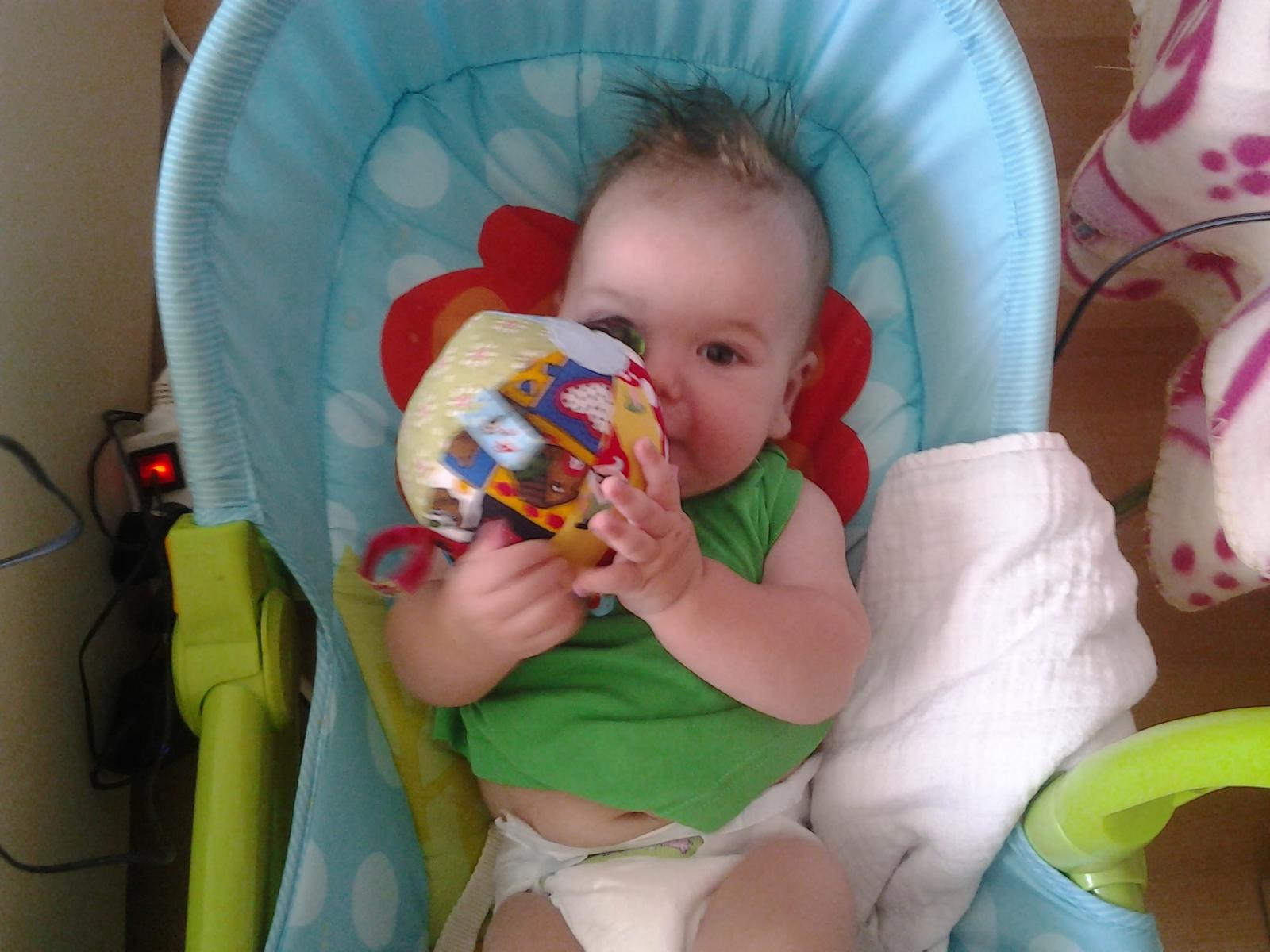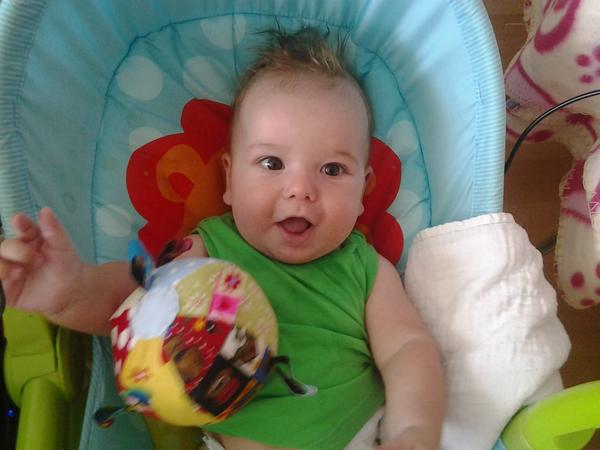 ja som dnes koneeeeeeeeeeeečneeeeee stroj vytiahla, len tak narýchlo s malým na kolene som mu loptičku urobila, kebyže sa s ňou mám čas vypiplať je lepšia, ale potešila, vnútri je kindervajce s fazuľkou, takže aj hrká