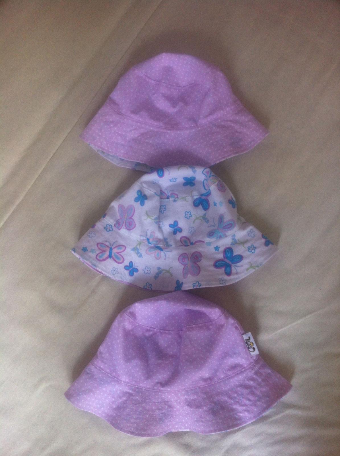 tři klobouky, ten třetí konečně J. sedí, ještěže máme sestřenici, kterou můžeme obdarovat. Zase blbě nafocené, tato látka je pro mě začarovaná. Jsou oboustranné.