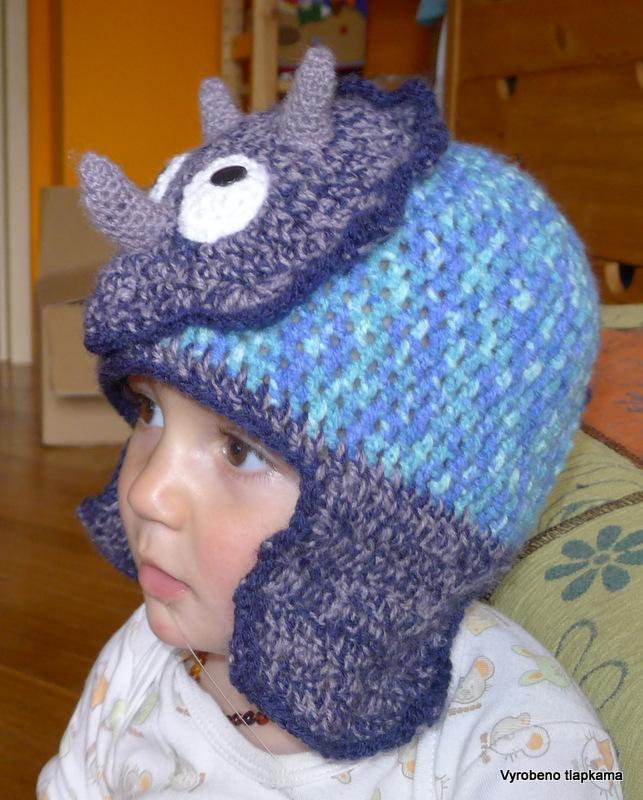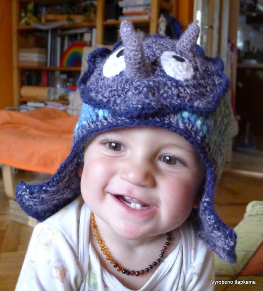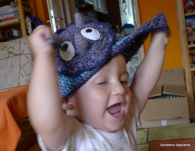 Tak jsem synovi ušila oboustranný klobouk, většinou ho nesundá ani na jídlo. Ale fotit se moc nechtěl.