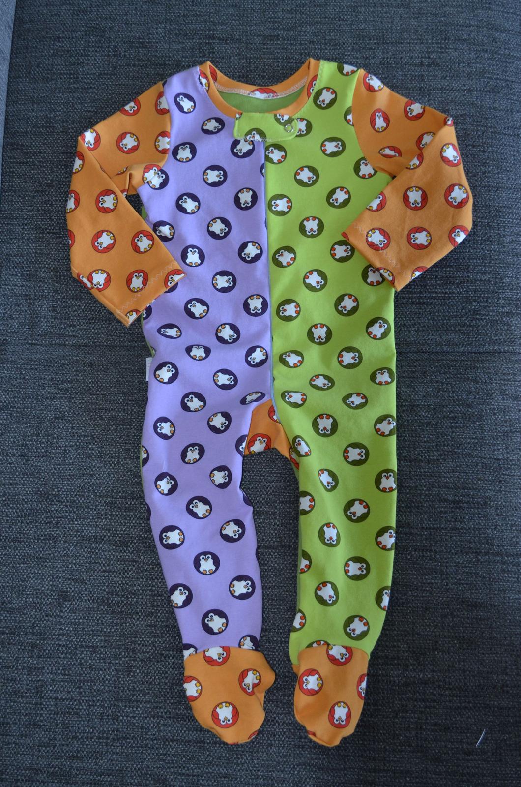 pyžamka, inspirace od @crawler, co se zbytky tučňáků. jen nevím, kde končí tučňouši a kde začíná papoušek 😀 @laeela - tady jsem dělala ten skrytý zip obyč zipovou patkou, docela jsem to odflákla (nežehlila), ale je to ucházející i tak.