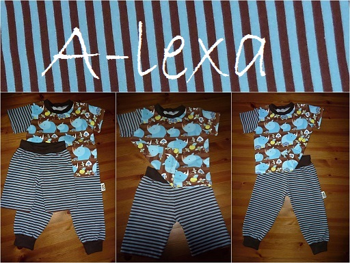 Jedny tepláčky a jedny tříčtvrťáčky k tričku s nosorožcema (co jsem šila už dříve) 😉. Ještě by to chtělo pirátku, ale netroufám si ☹ a není tolik času na šití. 🙄 😅
