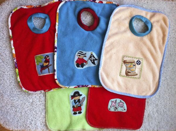 bryndáky coby susupajc 🙂 A příkrmy můžou začít. Šila jsem je dvakrát, protože u první várky jsem prostříhala moc velké díry, některé byly velké i J., která má skoro 3 roky 😀