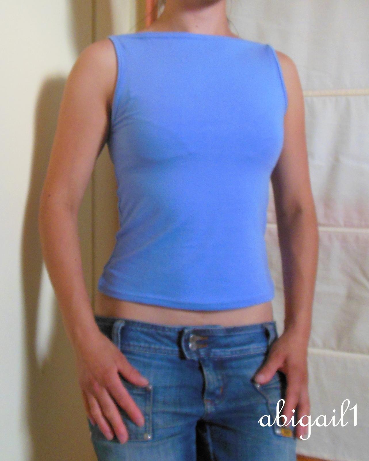 Dále letní šaty šité podle nějaké staré Burdy a tílko z jednolíce z Batani, střih podle kupovaného tílka. (Vím, fotka nekvalitní, ale jsem ráda, že jsem vůbec našla čas se vyfotit.)