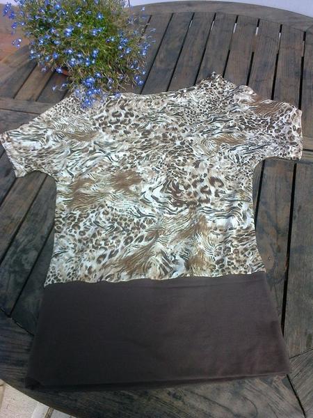 Tričko, střih od oka - přední/zadní díl je napůl, protože se na jeden prostřih z dadky vejde jen tři čtvrtě trika 🙂