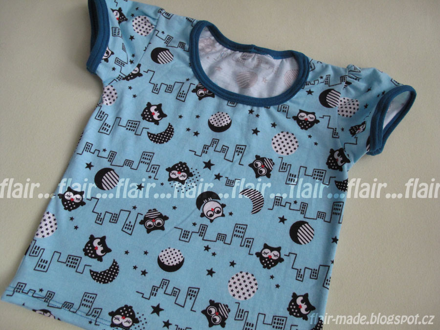 Holky, tak konečně jsem nad ránem došila i moje první "klasické" tričko... taky jsem si poprvé zkusila lemování na třetiny. U výstřihu jsem nadávala, že už nikdy více, ale u rukávů už to šlo nějak snadněji... holt musím víc šít 😝. Takže prosím i hromadu na čas, jo? 😀 Jinak položené to triko vypadá zvláštně (hlavně rukávy), ale oblečené celkem sedí... kdyby měl někdo radu, co udělat líp, sem s ní 🙂. Více fotek i s modelínou zde http://flair-made.blogspot.cz/2013/09/sovickovy...