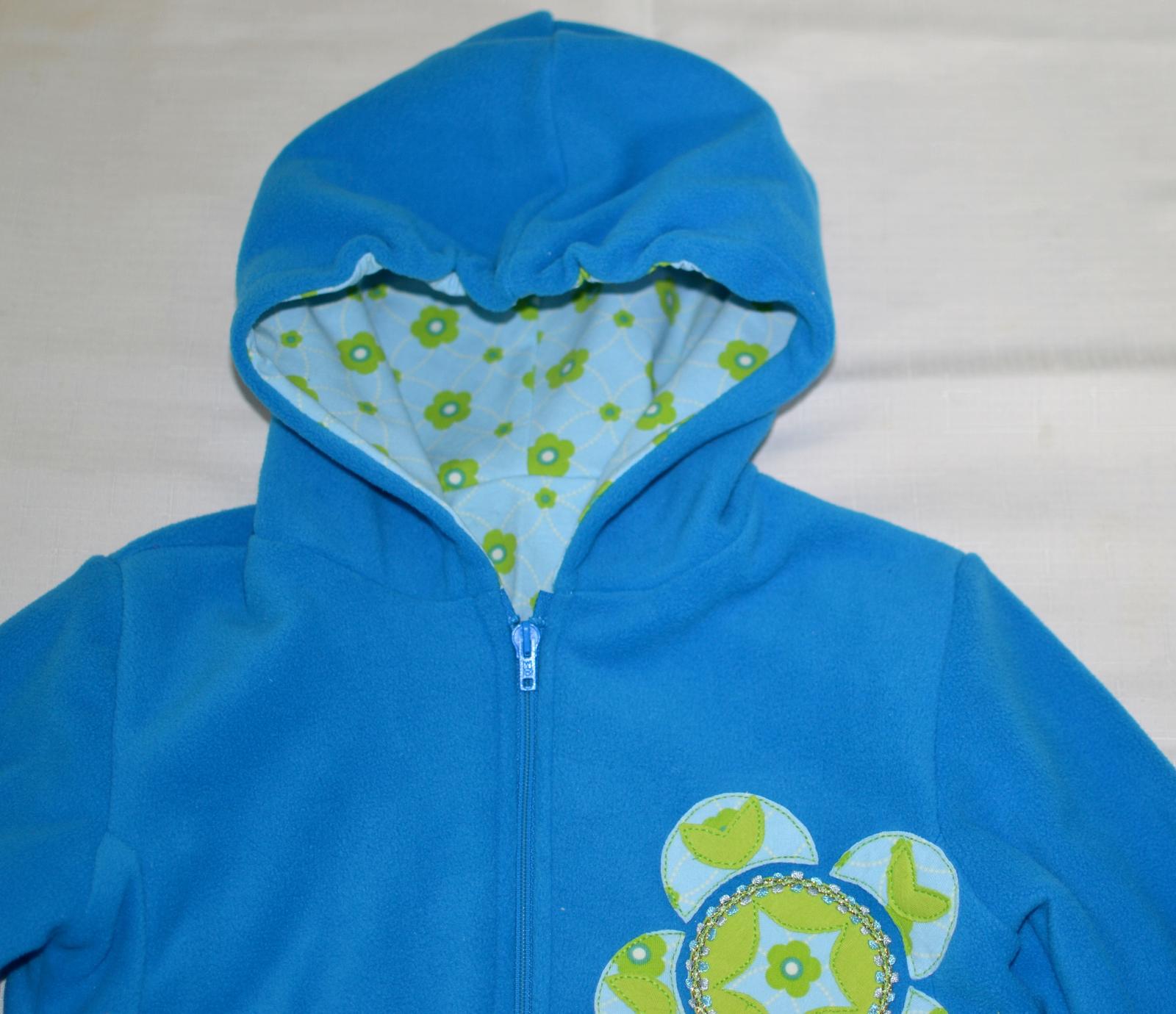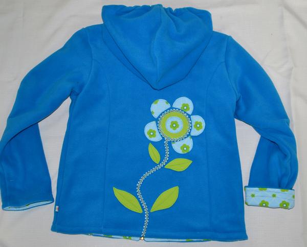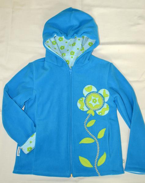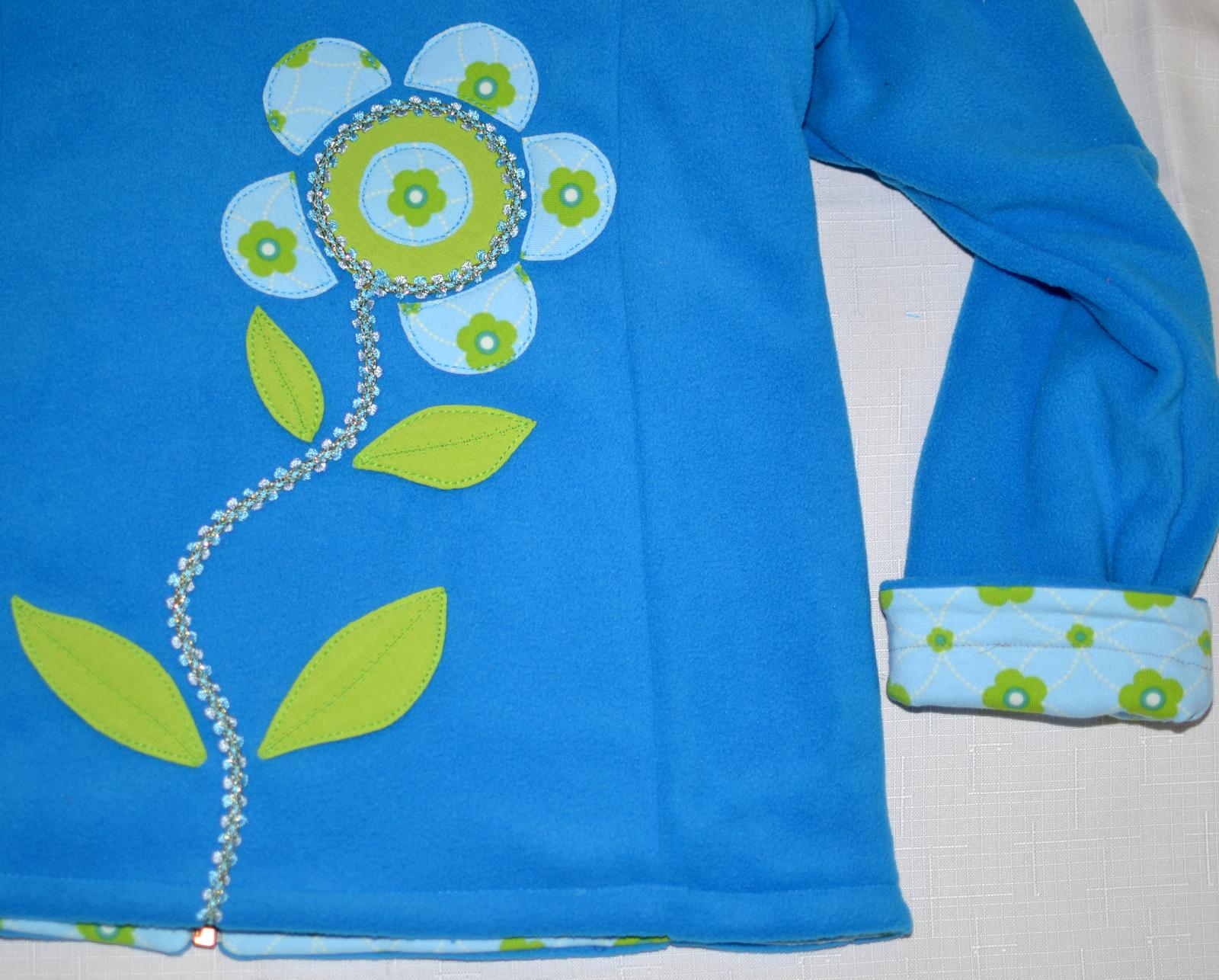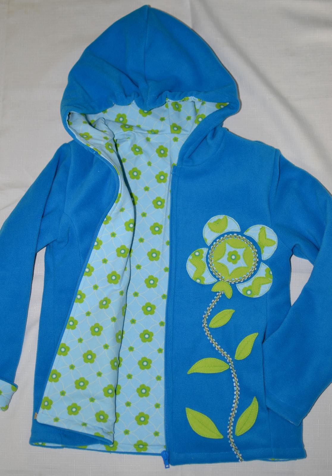 A modrá fliska podšitá pre Juli. Na aplikácii sa podieľala...vymýšľala tvary a kreslila návrhy.