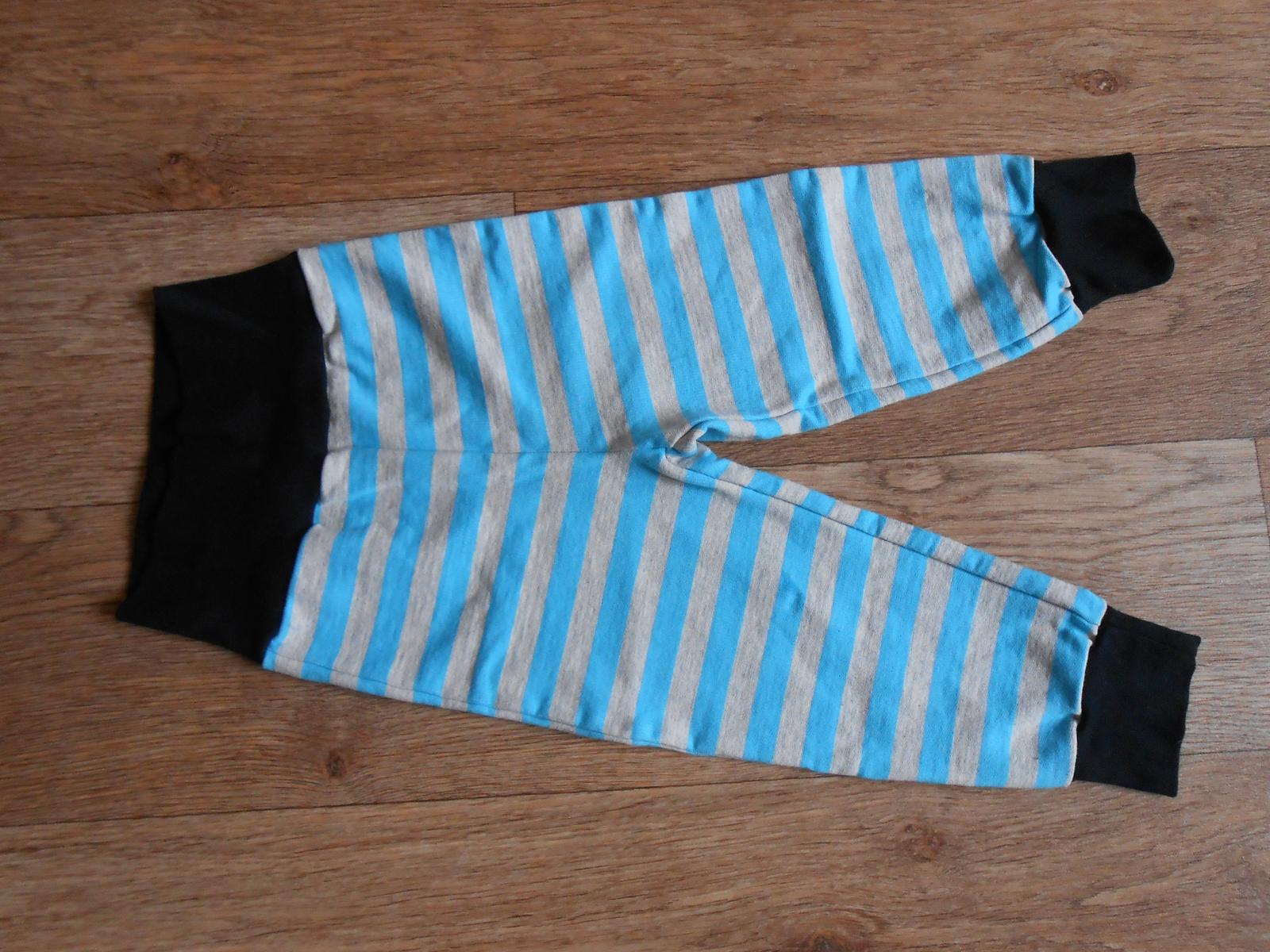 Konečně přidávám taky nějaké své výtvory - dvoje tepláky. Střih původně z Ottobre - ty pruhované jsou v pase do nápletu, místo na šňůrku, jak je v původní verzi... ty černé navíc zúžené podle oblíbených tepláků z Lindexu...takže už se původnímu střihu moc nepodobají. Jinak je to můj první počin z úpletu a na overlocku 🙂. Zatím teda vůbec nechápu práci s napětím nití... ale snad se to poddá. Jinak z těch pruhovaných moc nadšená nejsem - z té barevné kombinace...ale nic jiného doma zatím nemám 🙂. Ještě k tomu přibyde mikina, abych se naučila našít rovně zip a podšívat kapucu... než se pustím do něčeho z lepších látek 🙂. Ale teda nechápu vaši rychlovýrobu. Já během dopoledního spaní připravuju střih, hodinu stříhám... večer šiju, někdy to stihnu, spíš ale ne... jedna věc je tak práce průběžně na tři dny 🙂. A to si připadám, jak jsem hrozně výkonná a rychlá 🙂